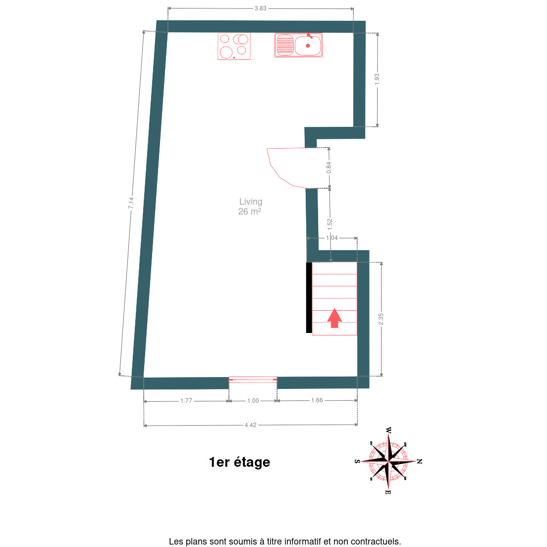 • Séjour lumineux avec cuisine équipée,