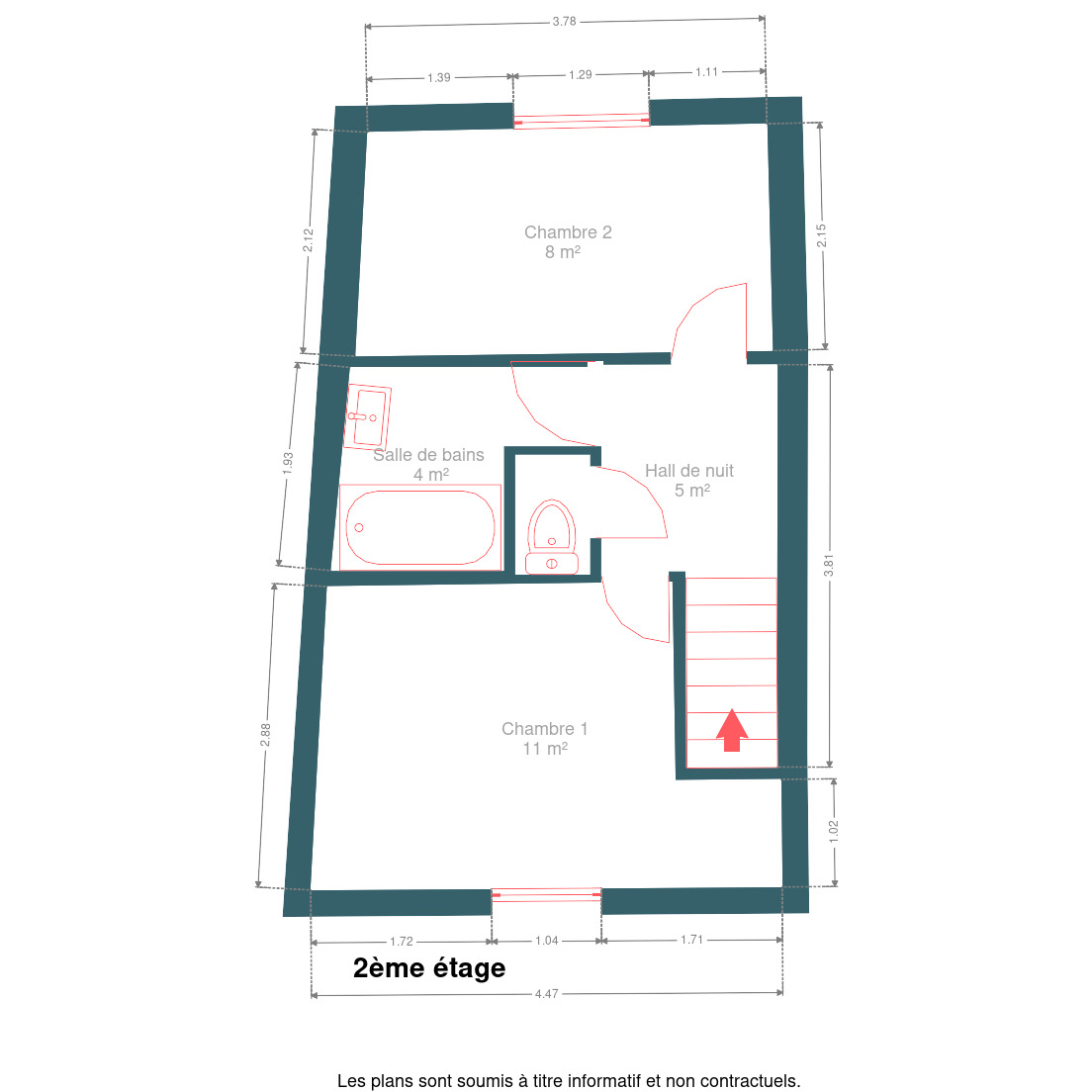 • Hall de nuit avec WC séparé,