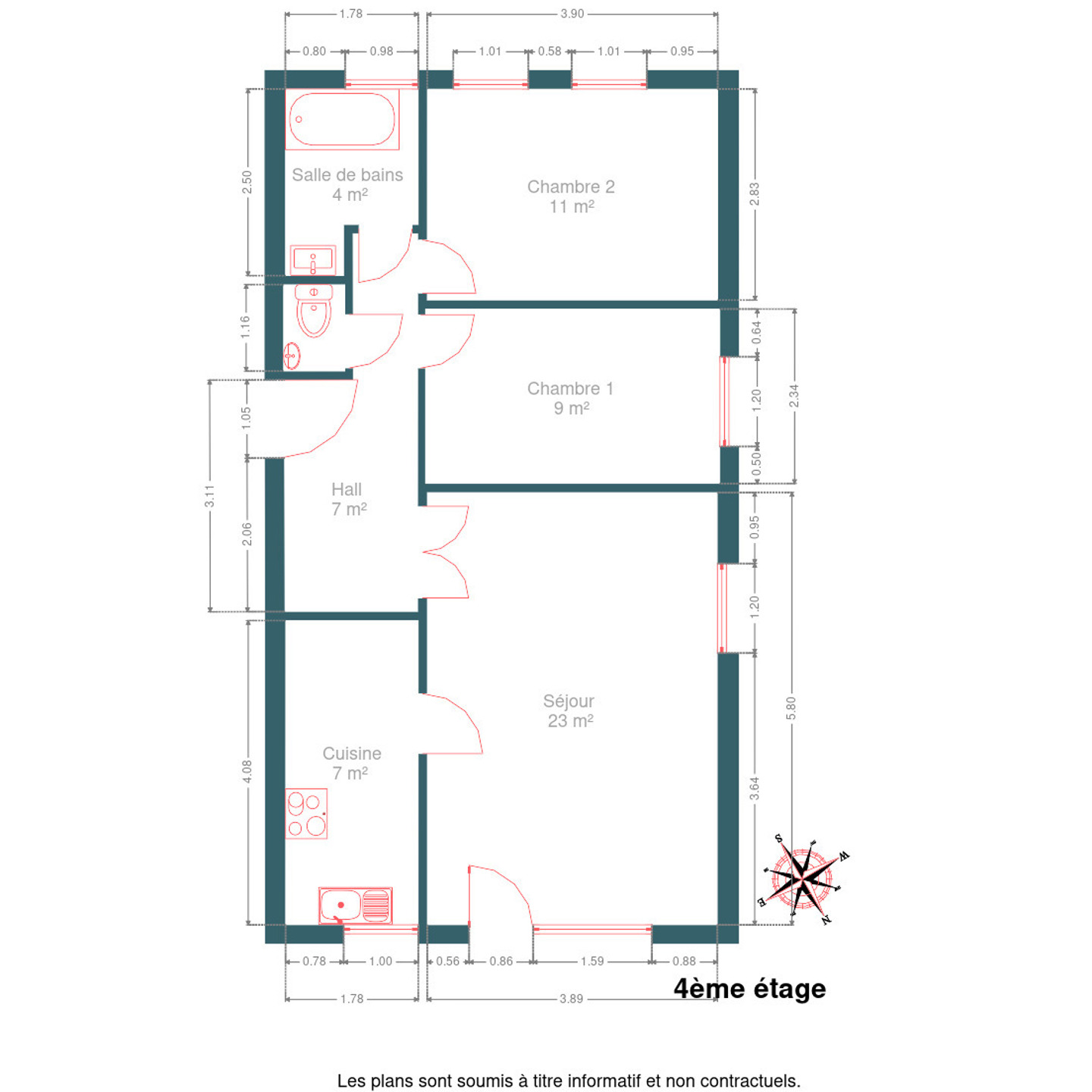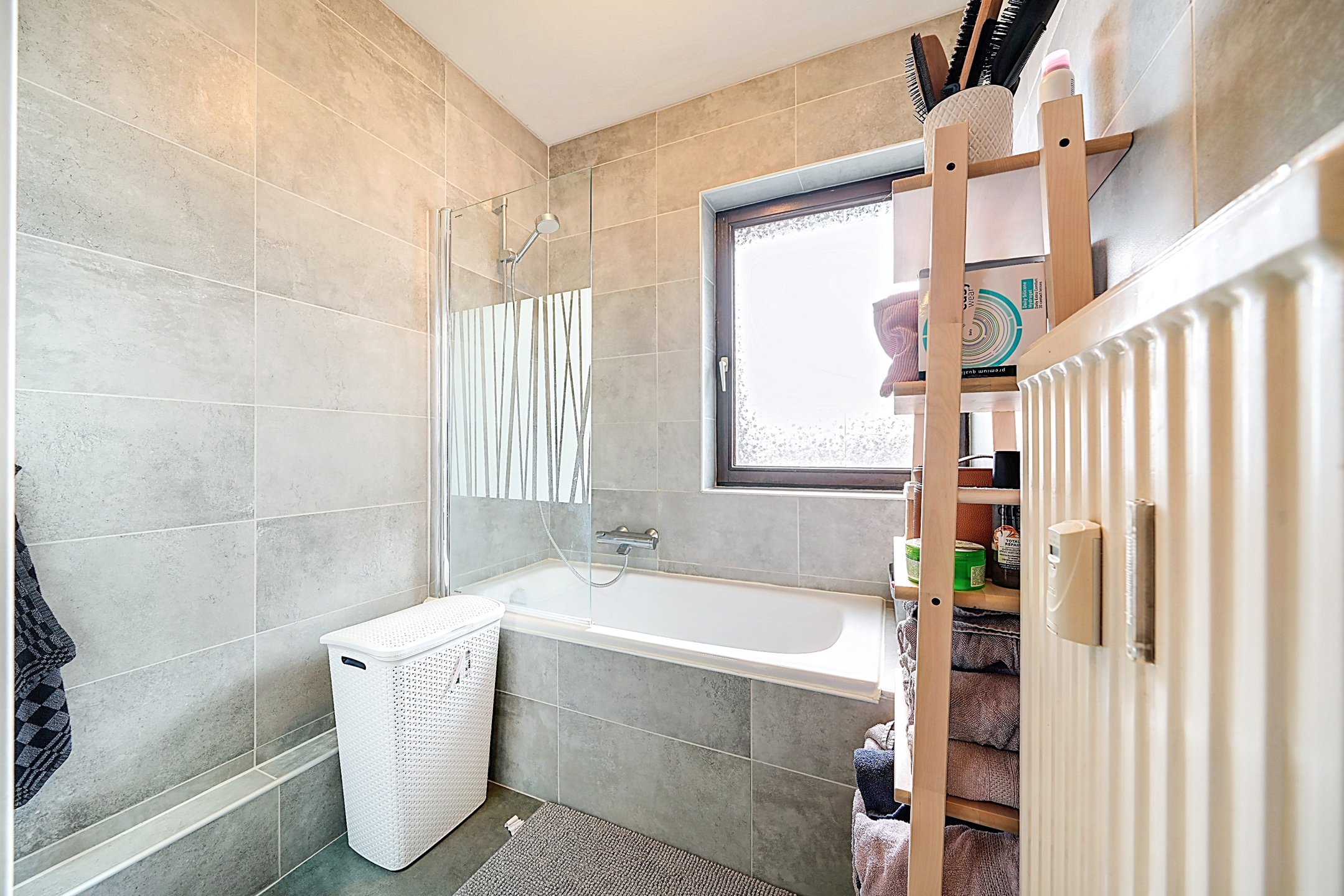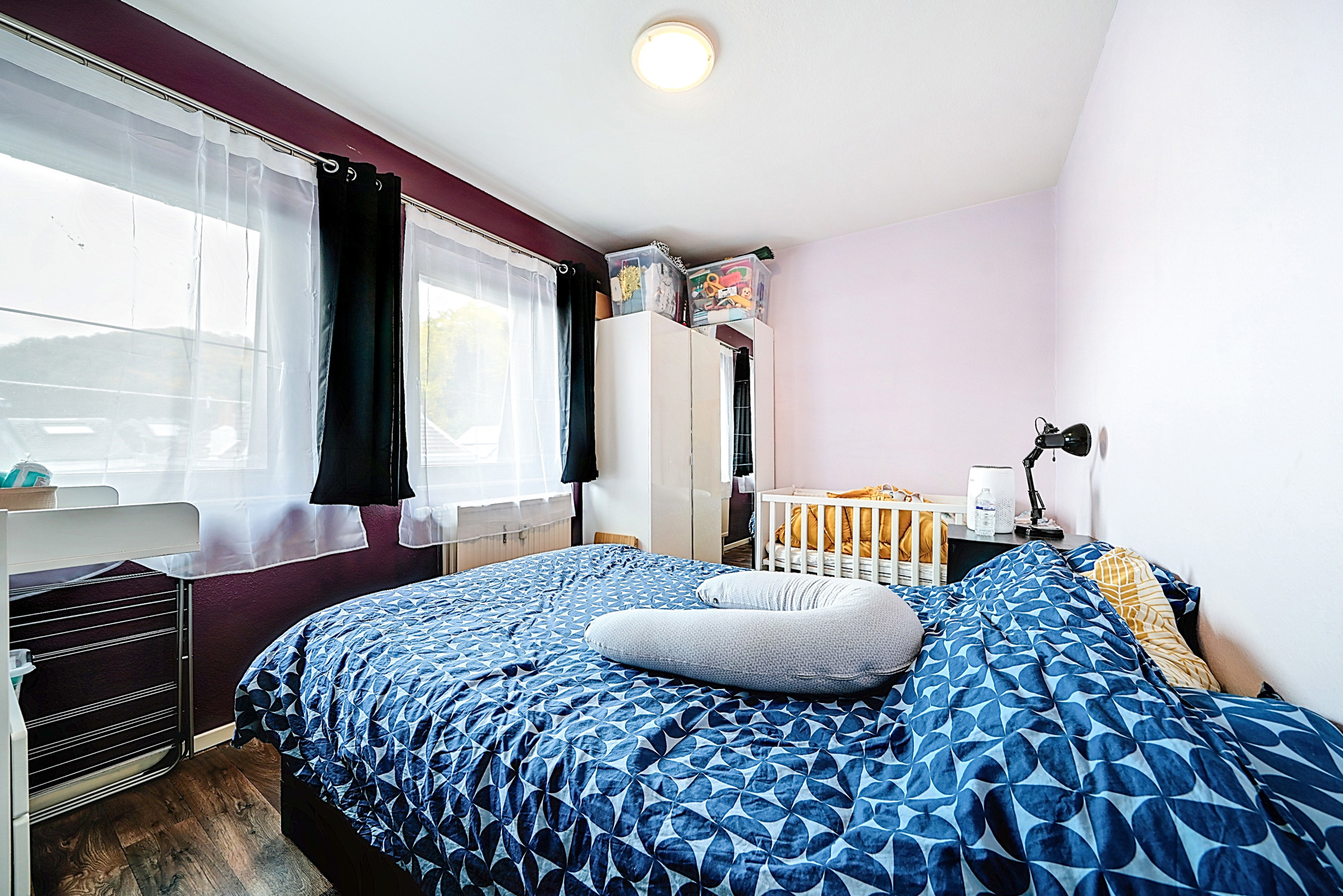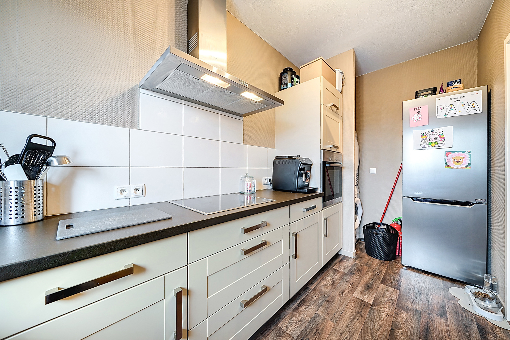 Composition comme suit : Hall d'entrée de 7 m², deux chambres à coucher de 9 et 11 m², nouvelle cuisine équipée (taque, hotte, four, lave vaisselle), salle de bain de 4 m² avec wc séparé, spacieux séjour lumineux de 23 m². Vous trouverez également un box de rangement.