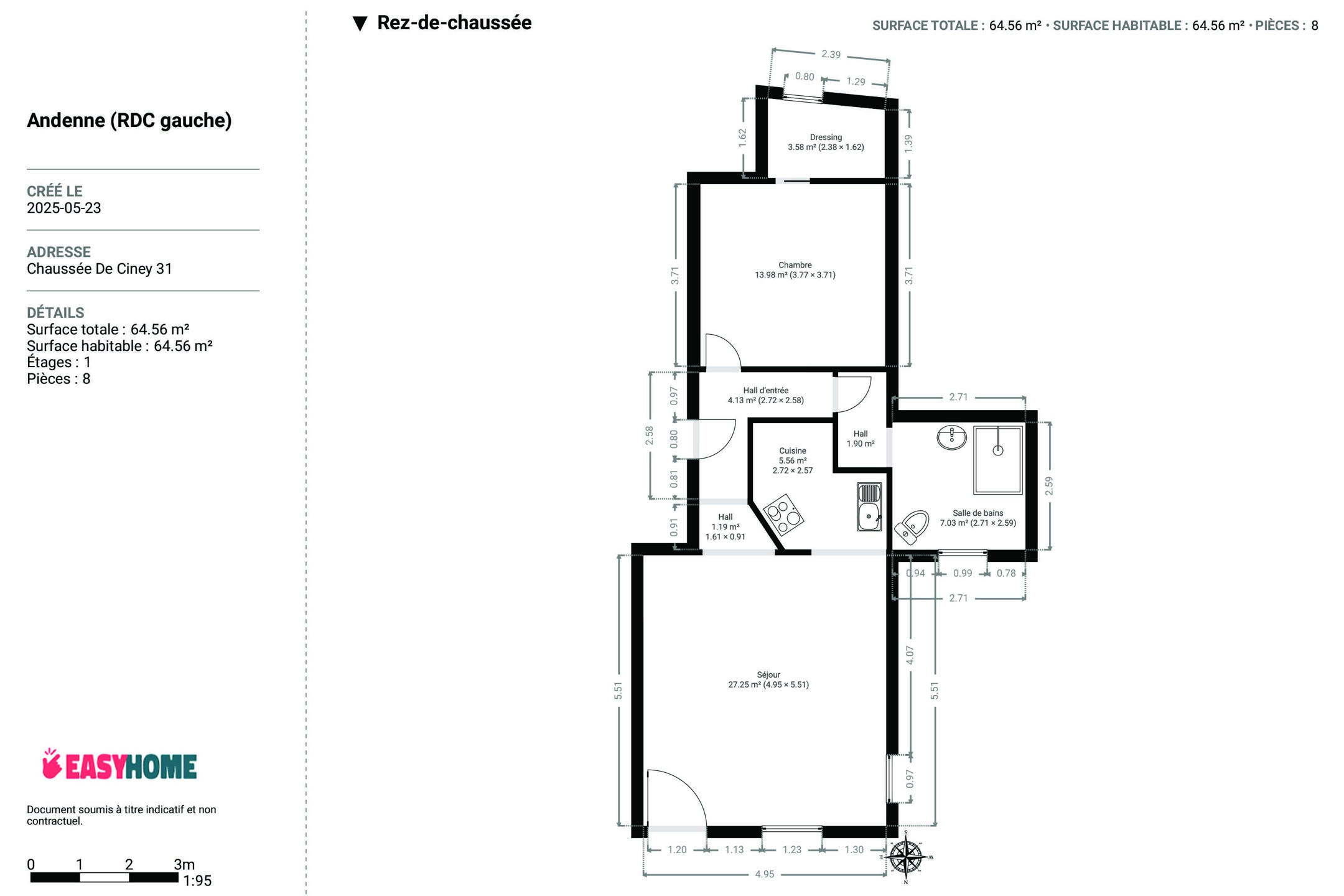 D’une surface bien agencée, le bien se compose d’une chambre avec espace dressing, d’une salle de bain avec WC, ainsi que d’un vaste séjour de plus de 32 m². Ce dernier intègre le salon, la salle à manger et une cuisine ouverte, formant un espace de vie lumineux et convivial, idéal pour recevoir ou se détendre.