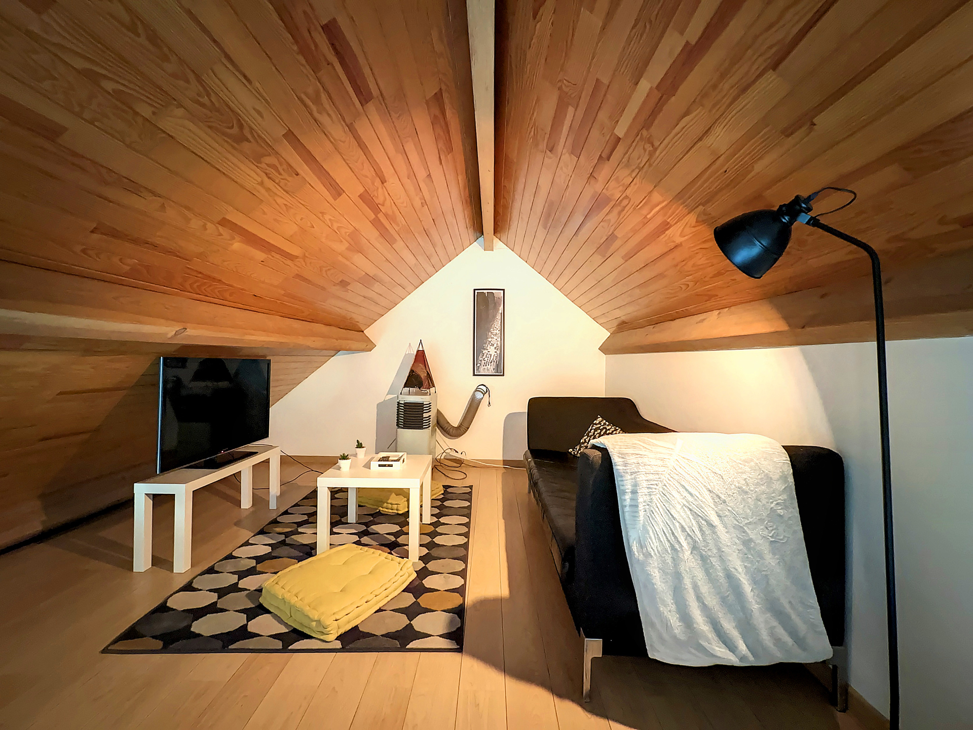 Avec deux chambres élégantes, une salle de douche fonctionnelle, un WC séparé et une mezzanine ouverte sur le séjour, ce duplex combine originalité et praticité. La mezzanine peut facilement servir de chambre d’appoint ou d’espace bureau, idéale pour le télétravail ou pour accueillir davantage d’invités.