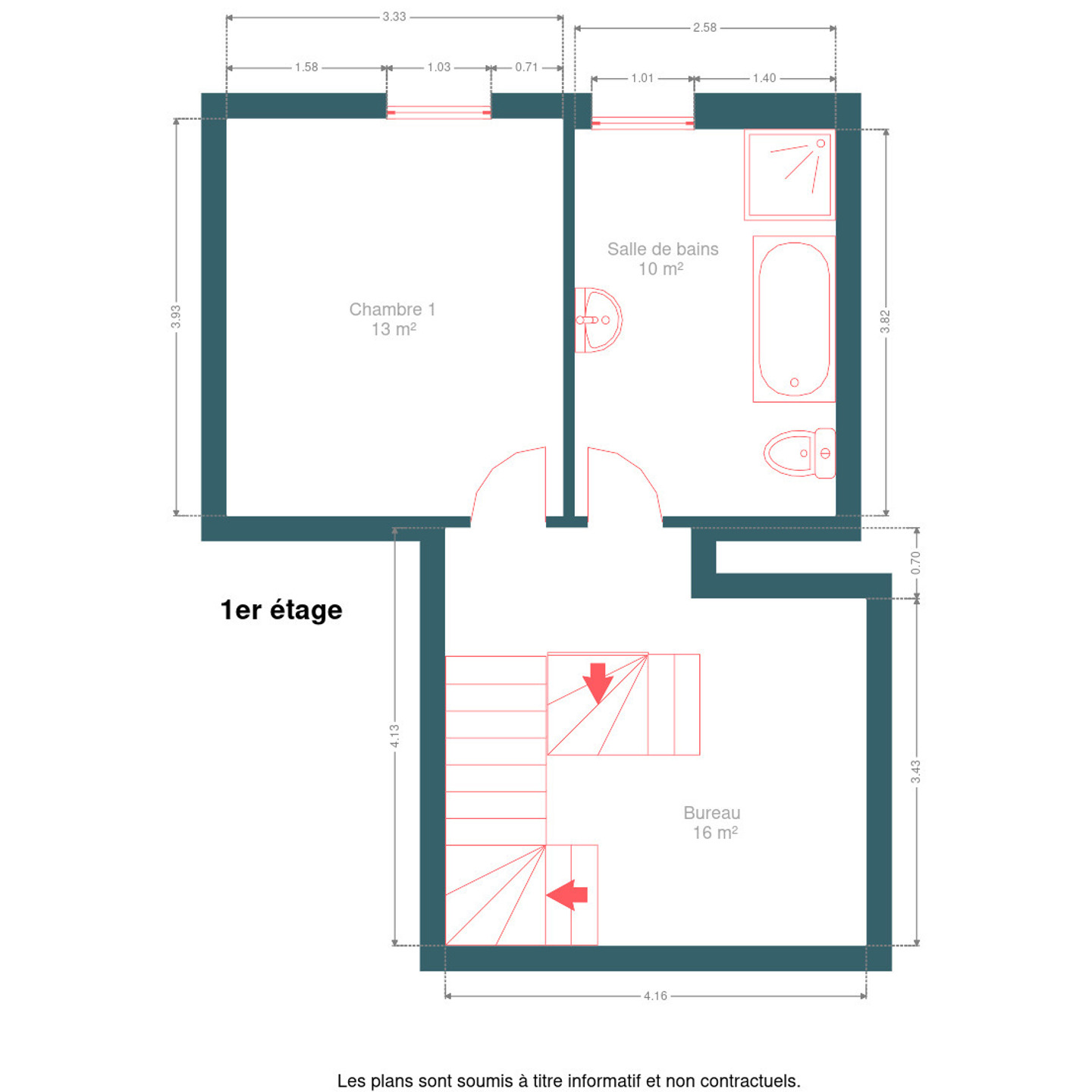 L’étage accueille une chambre confortable, une salle de bain complète avec douche, baignoire et WC, ainsi qu’un espace pouvant servir de bureau, dressing ou pièce supplémentaire selon vos besoins.