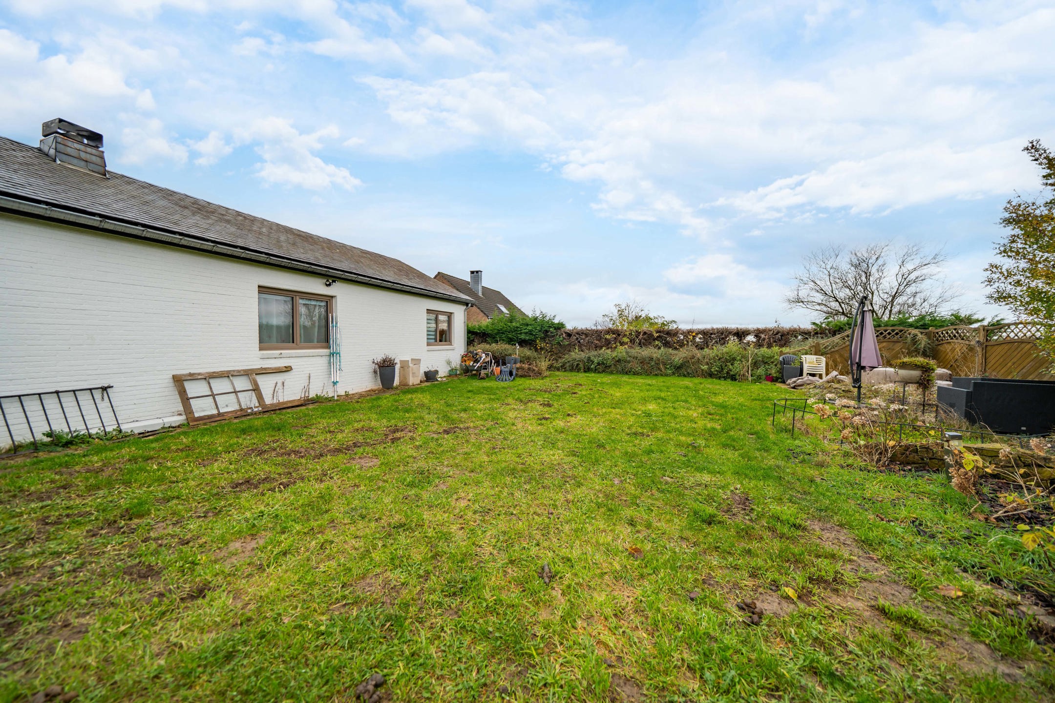 Vous rêvez d’un cadre de vie premium, calme, verdoyant et recherché, tout en restant proche de toutes les commodités ? Cette opportunité rare est faite pour vous ! EasyHome et Simon ont le plaisir de vous présenter ce superbe bungalow 4 façades, entièrement rénové en 2025 et idéalement situé dans un cul-de-sac paisible au cœur de Beaufays. Construit en 1979, il offre 126m² habitables comprenant un hall d’entrée accueillant, un séjour lumineux et chaleureux ouvert sur une cuisine moderne et entièrement équipée (2020), un hall de nuit menant vers une salle de douches neuve (2025), un WC indépendant et 4 chambres confortables. Le bien dispose également d’un sous-sol avec cave de rangement, de vides ventilés et d’un spacieux garage. À l’extérieur, vous profiterez d’un agréable jardin, offrant une vue dégagée sur les champs — idéal pour se détendre en toute tranquillité. Point de vue technique, la maison bénéficie de châssis triple vitrage (2022), de volets électriques, d’une bonne isolation générale (PEB D), d’un chauffage central au mazout complété par un poêle à pellets récent (2024) ainsi que d’une citerne d’eau de pluie. Aucun travaux lourd n’est à prévoir, vous n’avez plus qu’à poser vos valises. Un bien rare sur le marché, parfait pour une famille à la recherche du confort, de la nature et de la qualité de vie exceptionnelle qu’offre Beaufays. Prix d’affichage : 425.000€ (sous réserve d’acceptation des propriétaires).