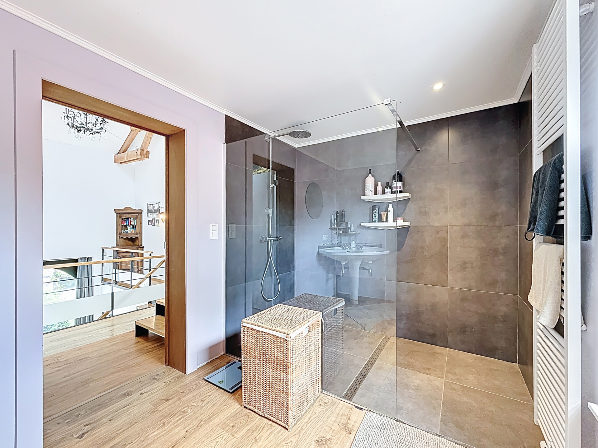 Un Bed & Breakfast opérationnel, comprenant 4 chambres avec salle de douche privative, un espace bar/petite restauration attenant à une élégante véranda actuellement utilisée comme salle de déjeuner. Au second étage, un grenier de 85 m² reste aménageable selon vos envies. Ce dernier génère actuellement un chiffre d’affaires d’environ 65.000 € par an.