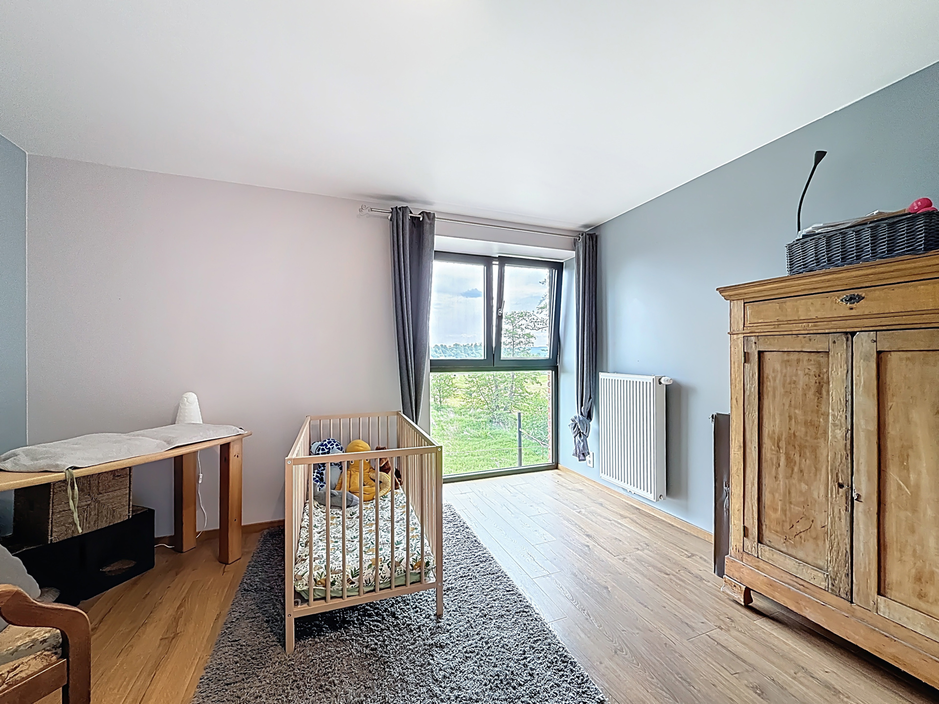 Une habitation privée chaleureuse, avec 3 chambres, 1 salle de douche, de généreux espaces de vie et une terrasse offrant une vue panoramique sur la vallée.