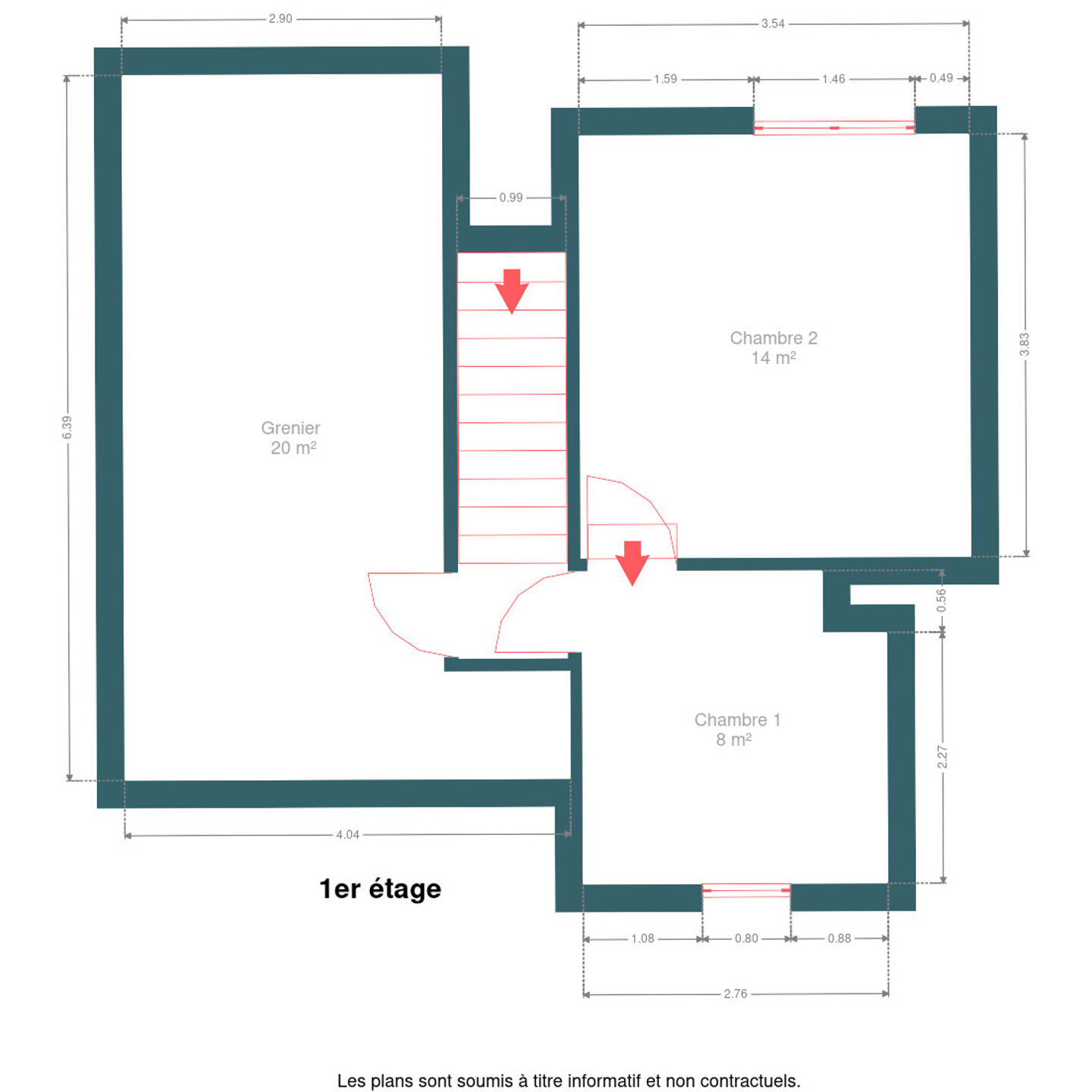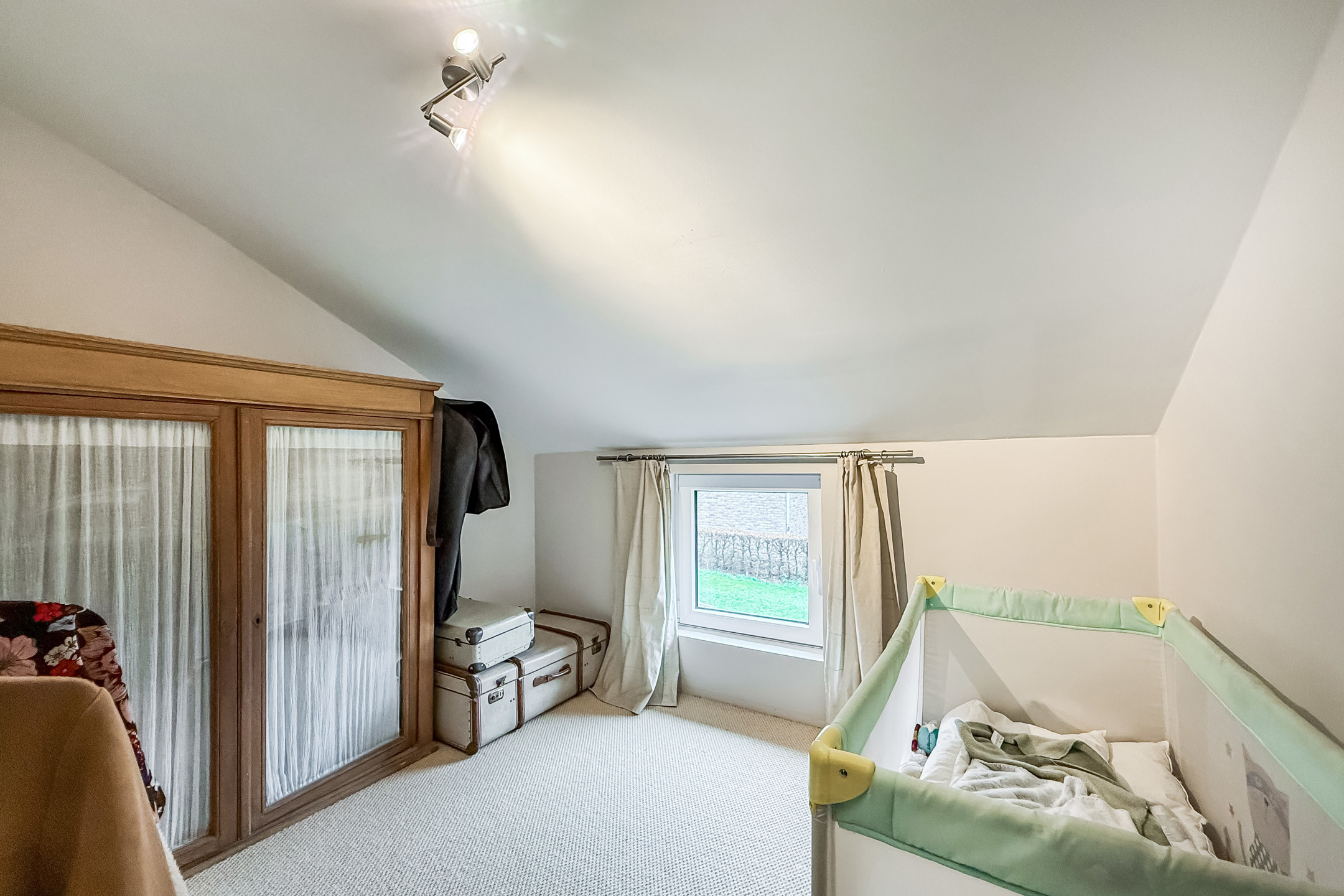 À l’étage, un hall de nuit dessert deux chambres en enfilade ainsi qu’un vaste grenier aménageable, idéal pour créer une troisième chambre.