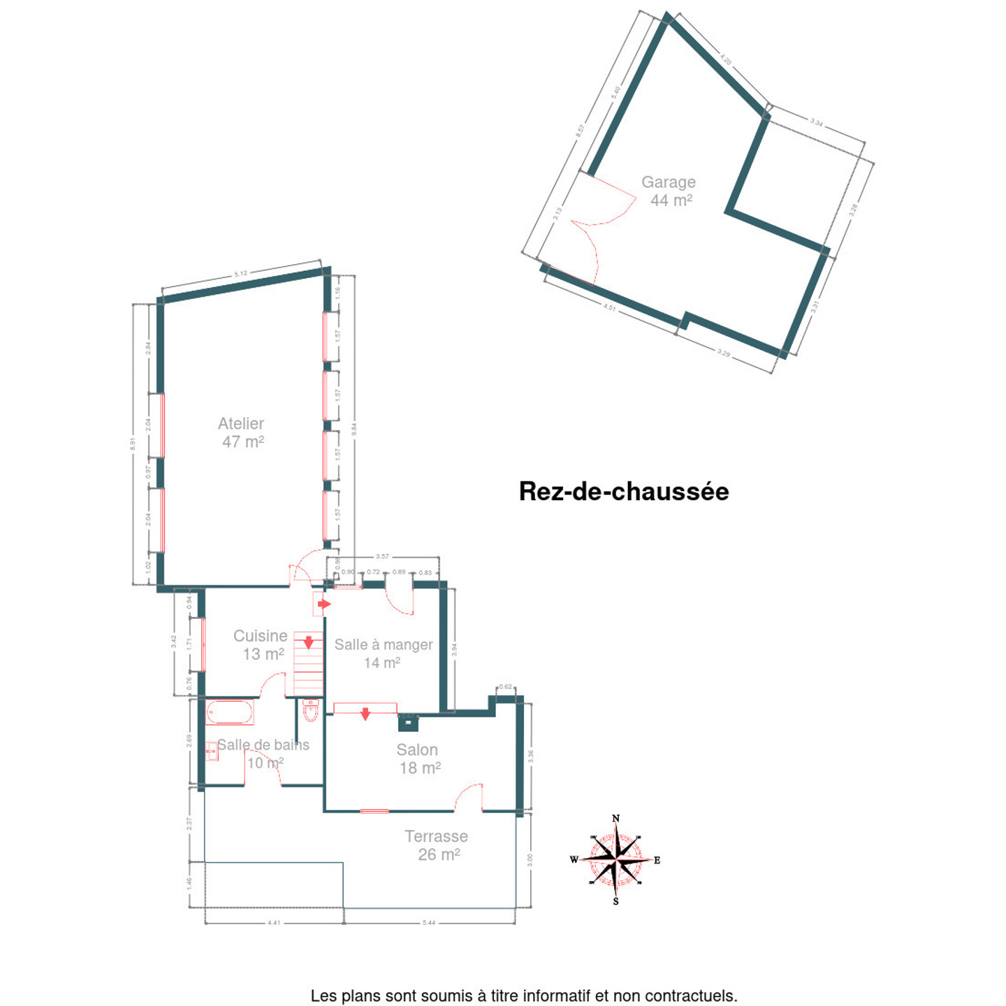 Atout majeur : un atelier de 47 m² pouvant être transformé en surface habitable supplémentaire, en bureau ou en studio, selon vos envies. La maison dispose également d’un garage et d’une cave.