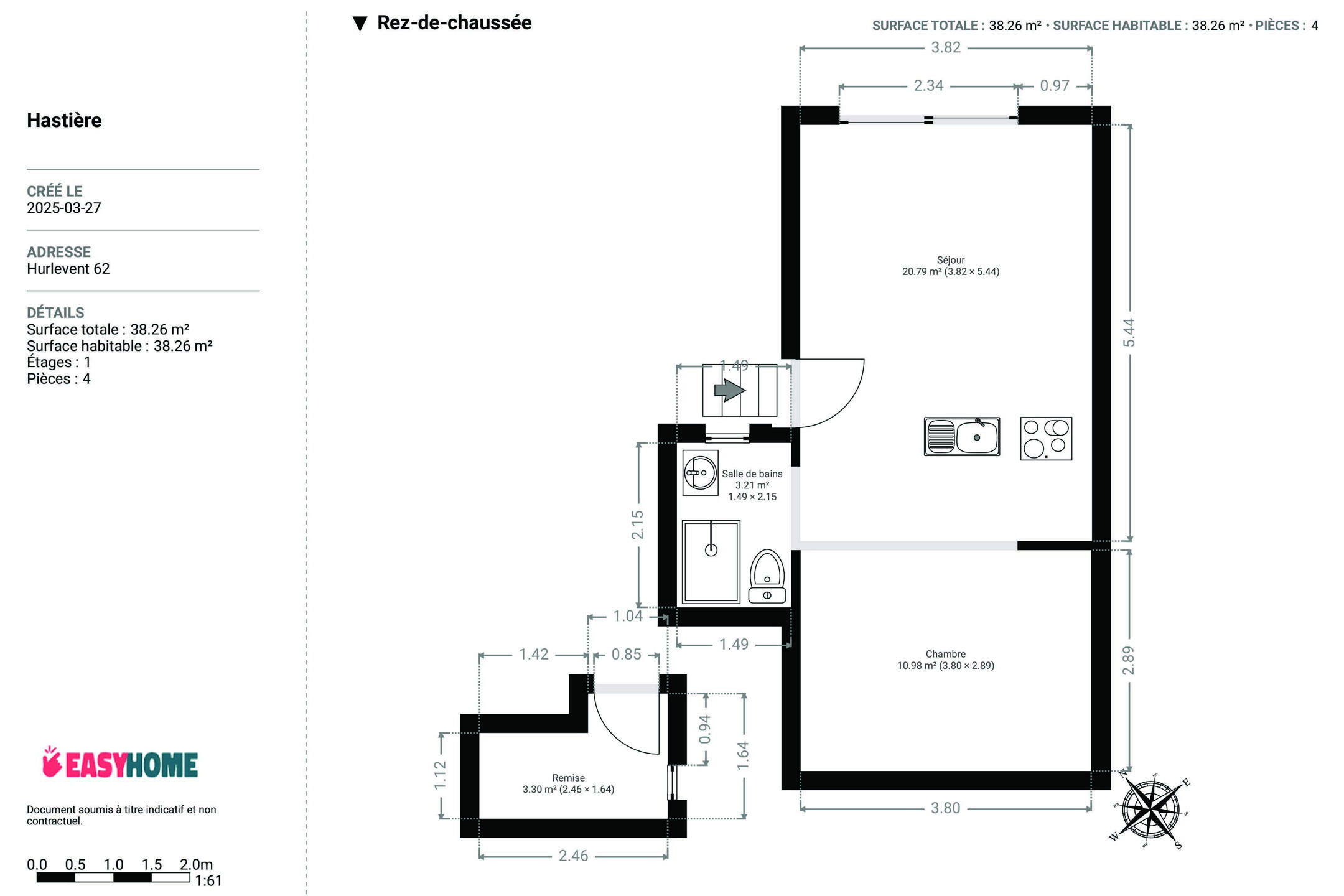 D'une superficie de 20 m², l’espace séjour bénéficie d'une belle luminosité et d'une atmosphère chaleureuse. La chambre de 11 m² constitue un véritable cocon, parfait pour des nuits reposantes. La salle de douche avec WC est fonctionnelle et moderne.