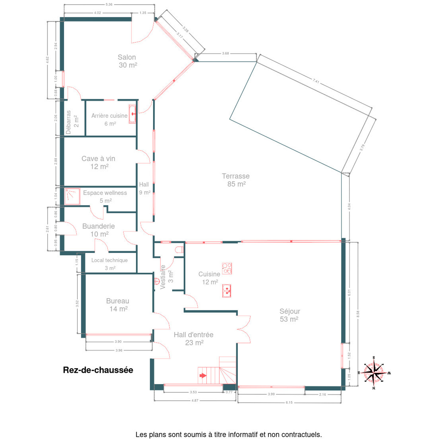 Au rez-de-chaussée, vous découvrirez un spacieux espace de vie composé d’un séjour lumineux, d’un salon d’hiver, d’une salle à manger, ainsi que d’une cuisine ouverte à l’américaine parfaitement équipée. Une annexe abrite un salon d’été, véritable espace détente donnant sur le jardin.