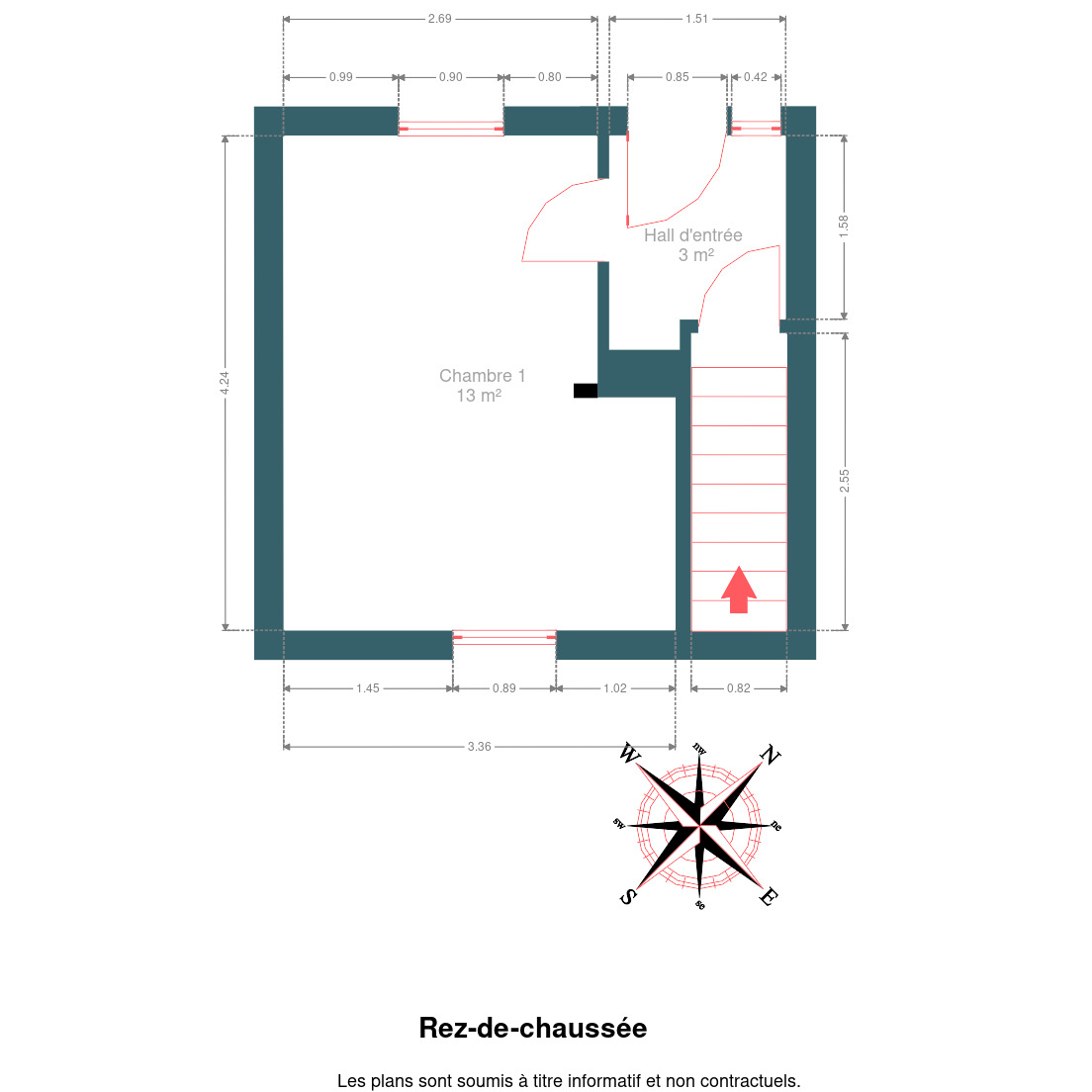 Le bien se compose d’un hall d’entrée, d’un séjour lumineux avec cuisine ouverte équipée,d’ un poêle à bois et accès à une terrasse de ± 10 m² orientée sud-est avec vue dégagée. Il offre également trois chambres (dont une plus petite), une salle d’eau et un WC séparé.