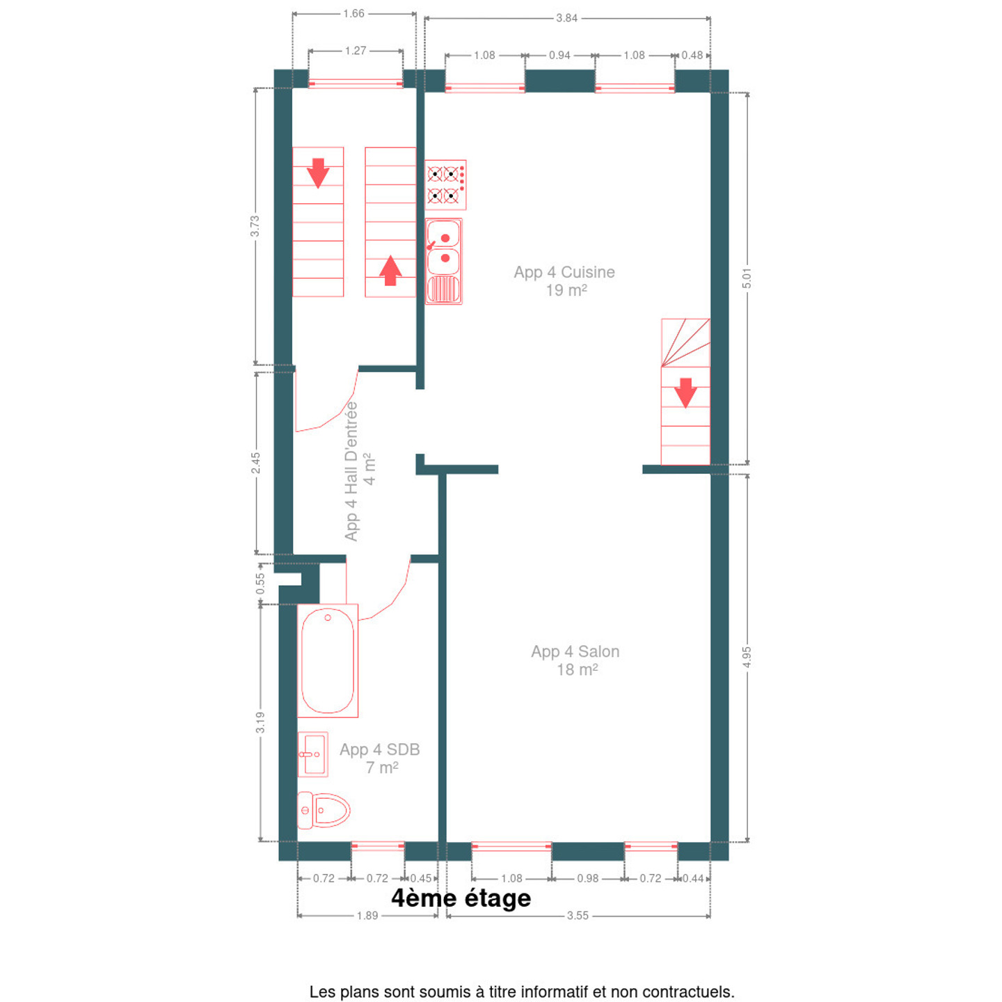 Immeuble mixte rénové : 4 appartements + RDC commercial + bureaux