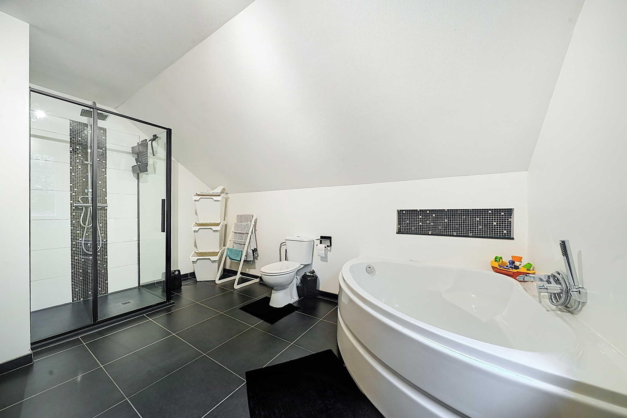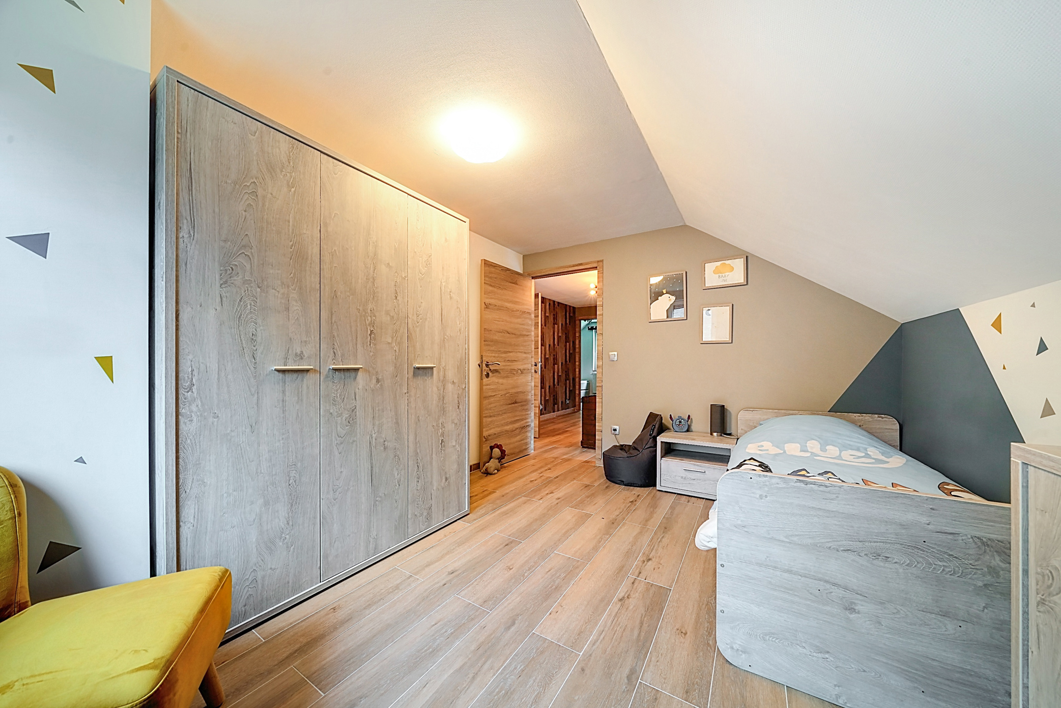 Dès l’entrée, vous profitez d’un vaste espace de vie ouvert, lumineux et parfaitement agencé, réunissant le salon, la salle à manger et une cuisine entièrement équipée. L’ensemble offre une atmosphère accueillante et fonctionnelle, pensée pour répondre aux exigences d’un quotidien dynamique. Une buanderie attenante vient compléter l’espace de vie. À l’étage, trois grandes chambres assurent confort et tranquillité, tandis qu’une salle de bain complète, équipée d’une baignoire et d’une douche, répond aux besoins de chacun. Un garage est également intégré au bien.