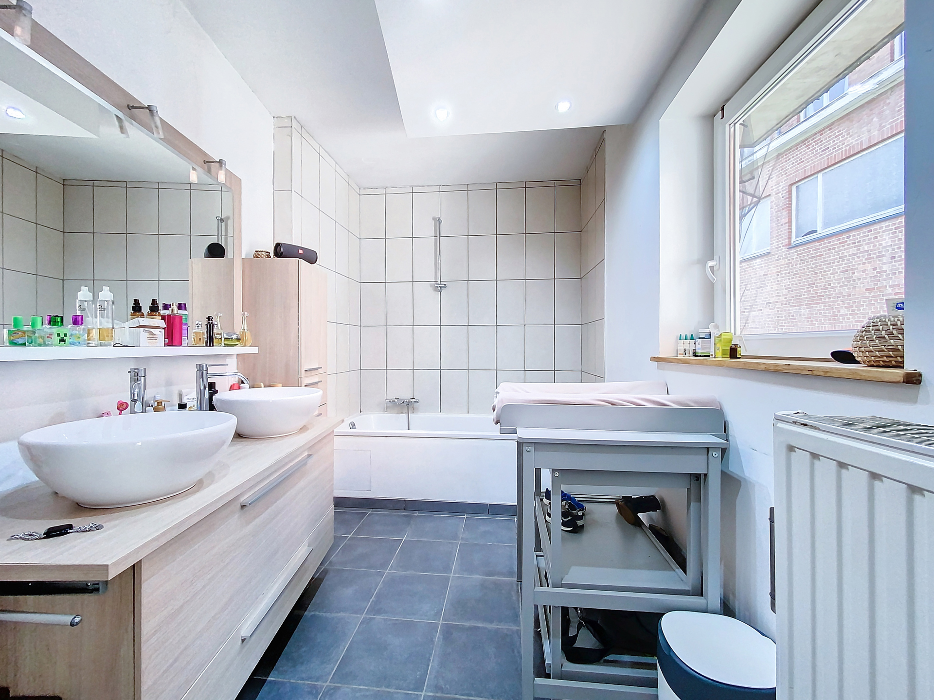 Ce bien bénéficie d'un chauffage central au gaz de ville avec une chaudière récente, d'une installation électrique conforme et de châssis en double vitrage pour un meilleur confort thermique et acoustique. La toiture est isolée et est équipée de panneaux photovoltaïques, contribuant ainsi à une consommation d'énergie plus responsable et à la réduction des coûts.