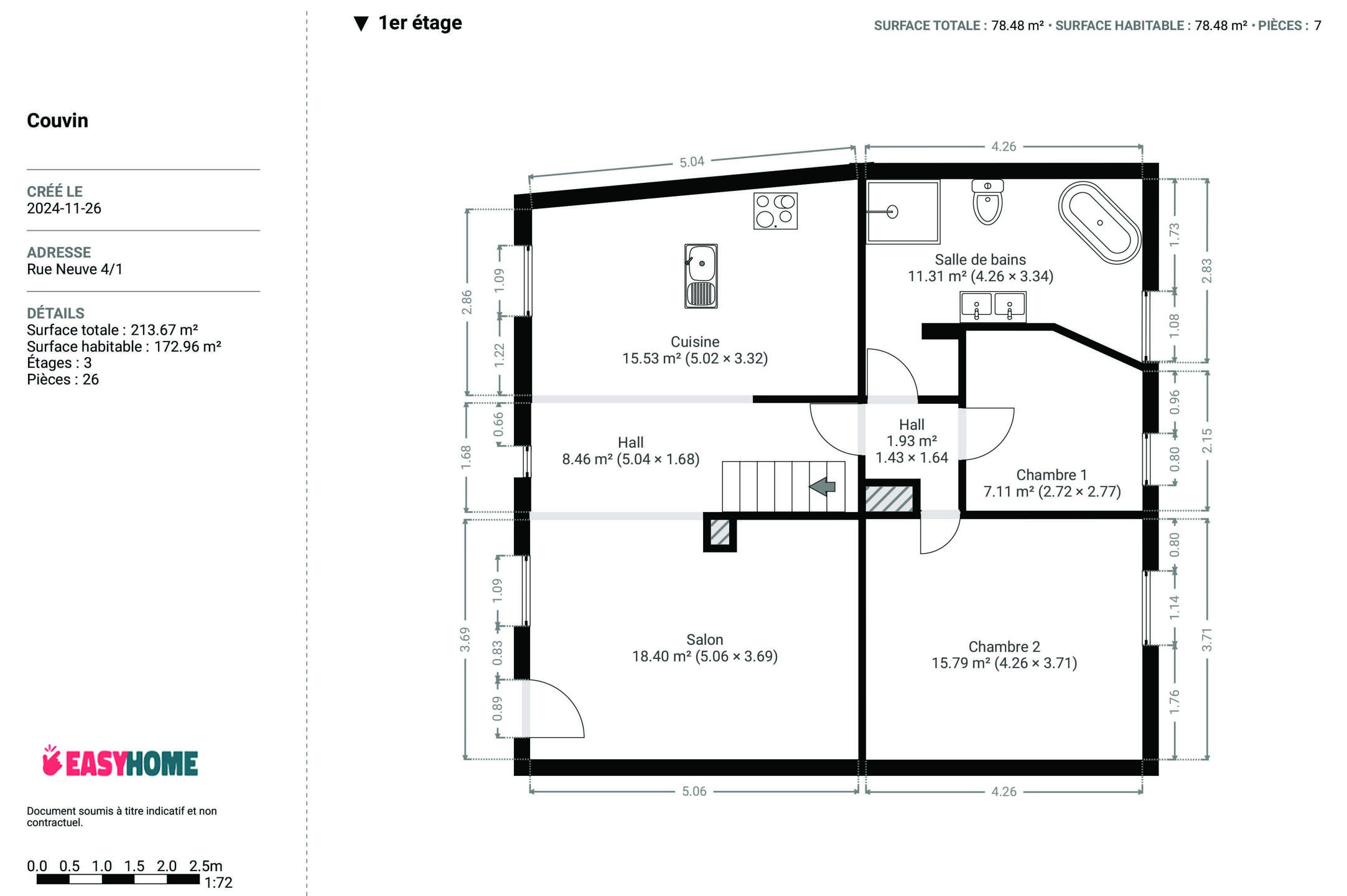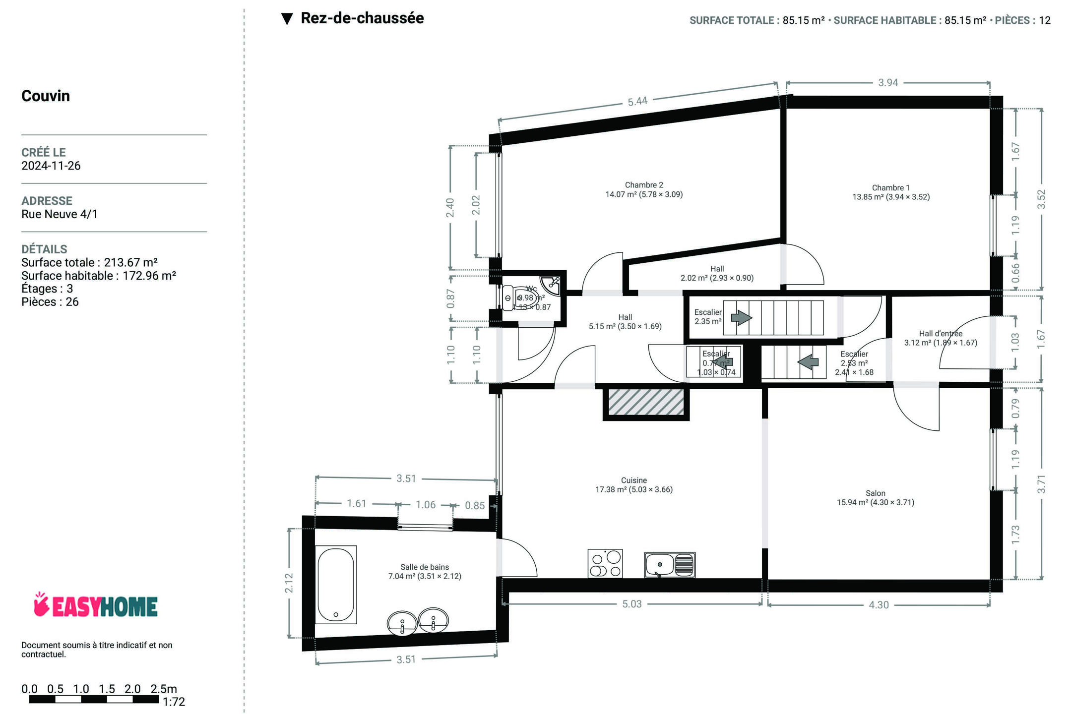 Nous vous proposons à la vente, un immeuble entièrement rénové, idéalement situé à Couvin. Ce bien est composé de deux appartements de 2 chambres, chacun offrant un cadre de vie moderne et confortable. L'immeuble génère un revenu locatif de 1.550€ par mois, avec une rentabilité attractive pour les investisseurs.