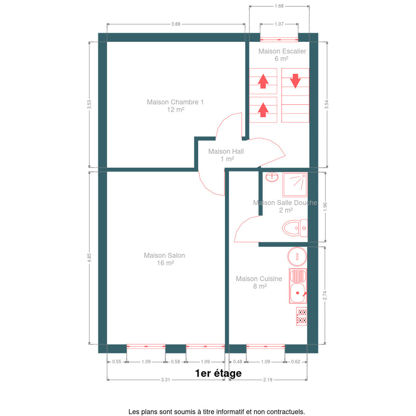 Il est composé au rez-de-chaussée d'un sas d'entrée, d'une entrée pour le commerce, et de diverses annexes inhérentes à ce commerce. Il y a également une entrée pour l'habitation menant à un hall et la cage d'escalier. Au premier, un ensemble de 4 pièces aménagée en studio (Cuisine, salle de bains, séjour et chambre). Au deuxième étage, une salle de bains, un séjour ouvert sur la cuisine et une chambre. Dans les combles 2 petites pièces, une chambre et un séjour en 'L'. Au sous-sol, une cave confortable.