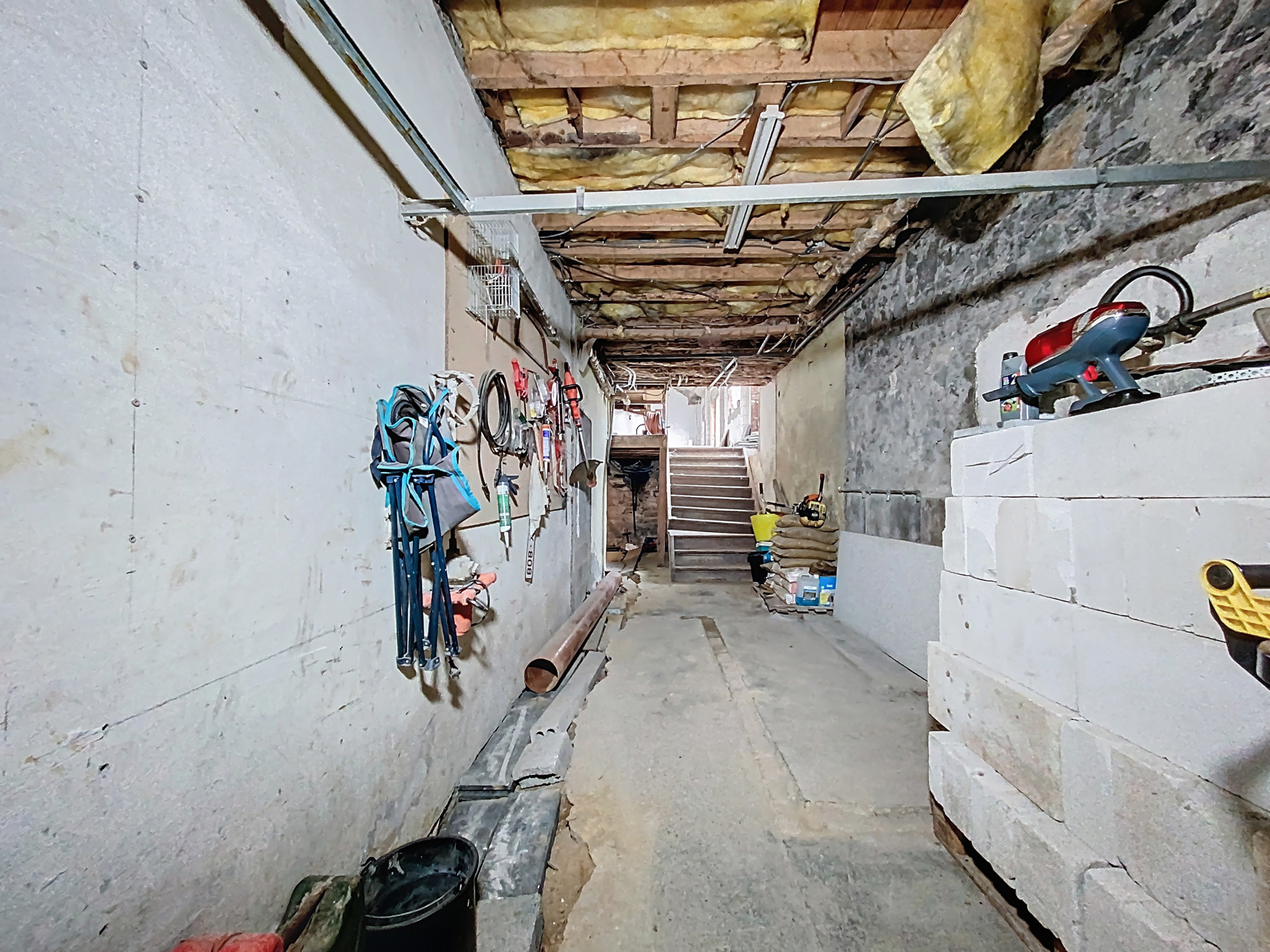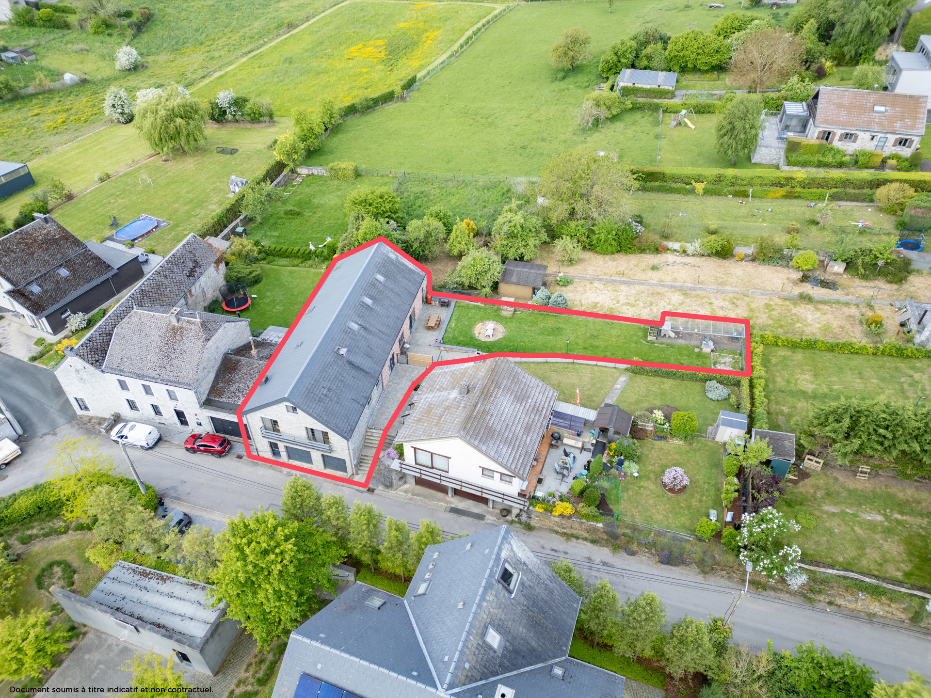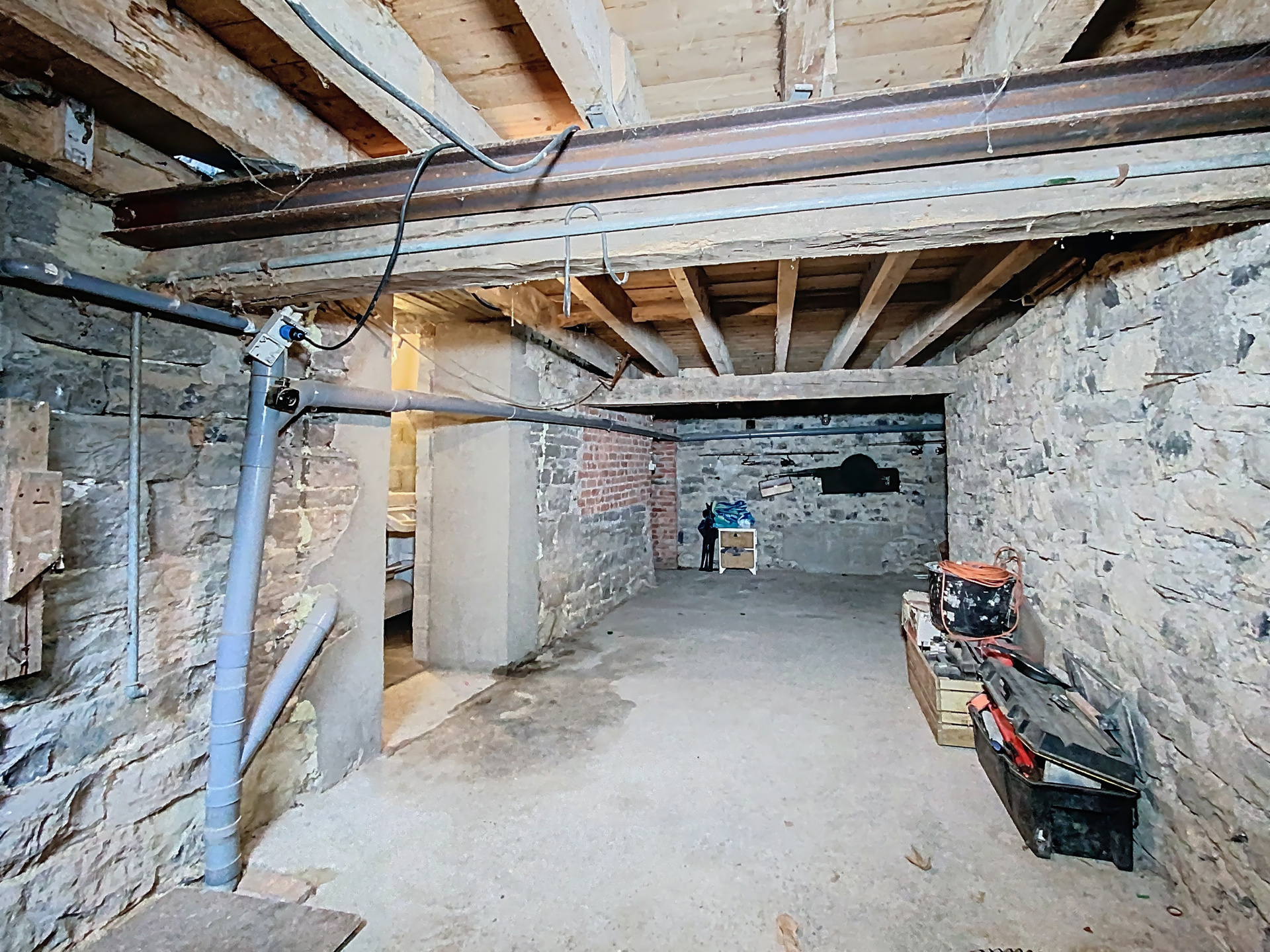 Le tout est implanté sur un terrain de 5 ares, offrant un agréable espace extérieur. Deux garages viennent compléter l’ensemble, ainsi que des caves, parfaites pour le rangement ou un atelier. Ce bien combine une partie immédiatement habitable et un espace à développer selon vos projets, ce qui en fait une opportunité rare sur le marché.