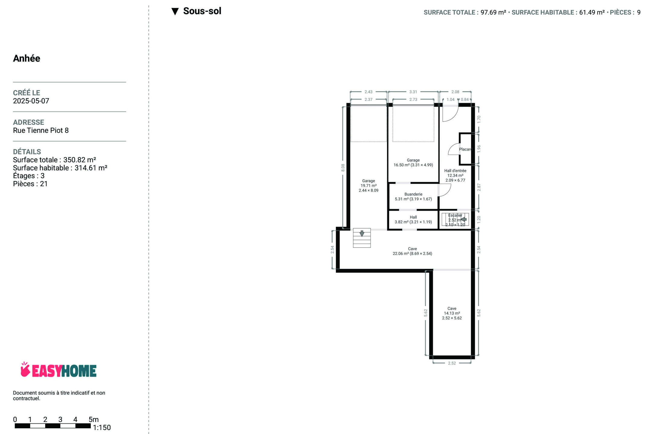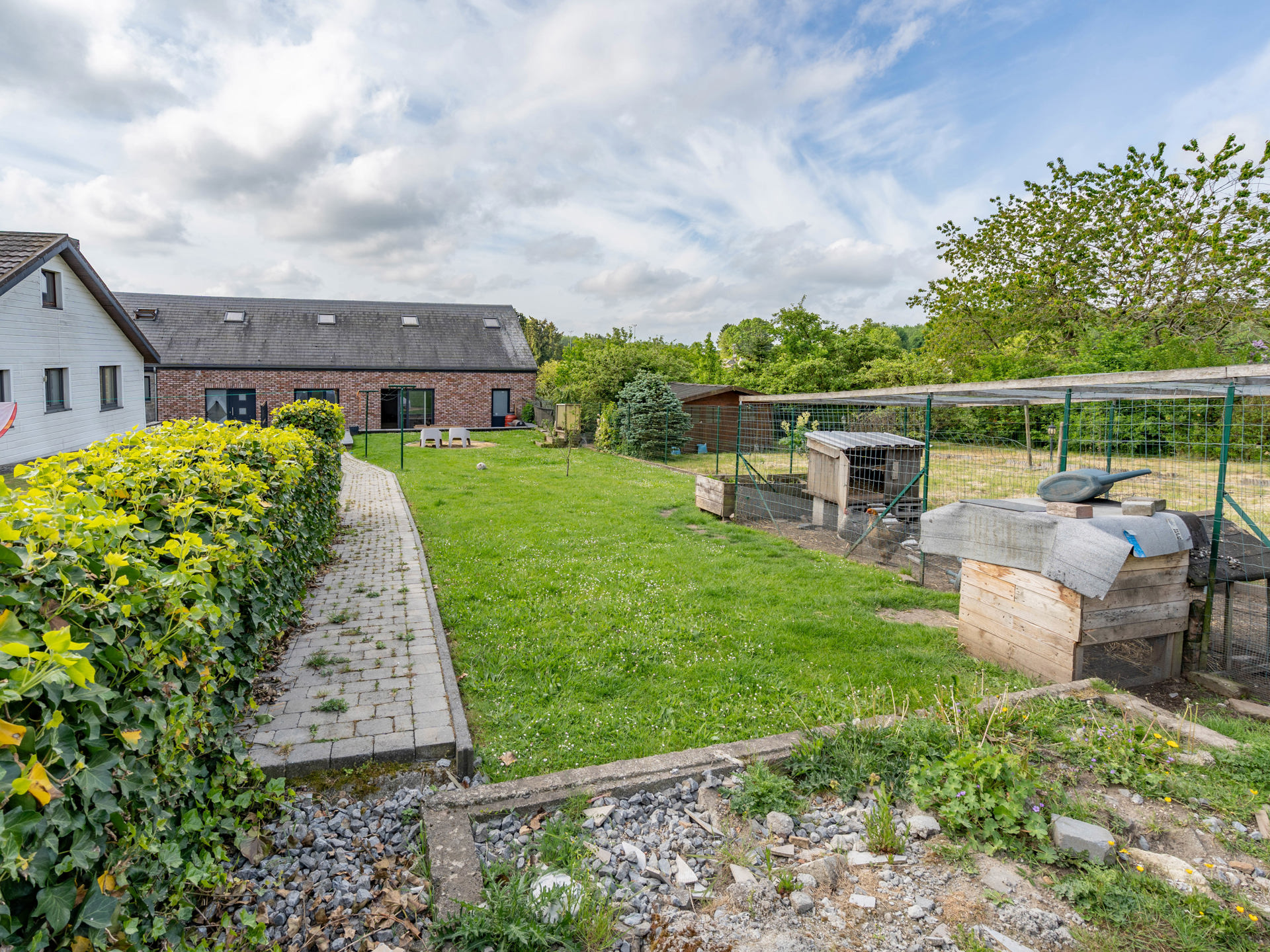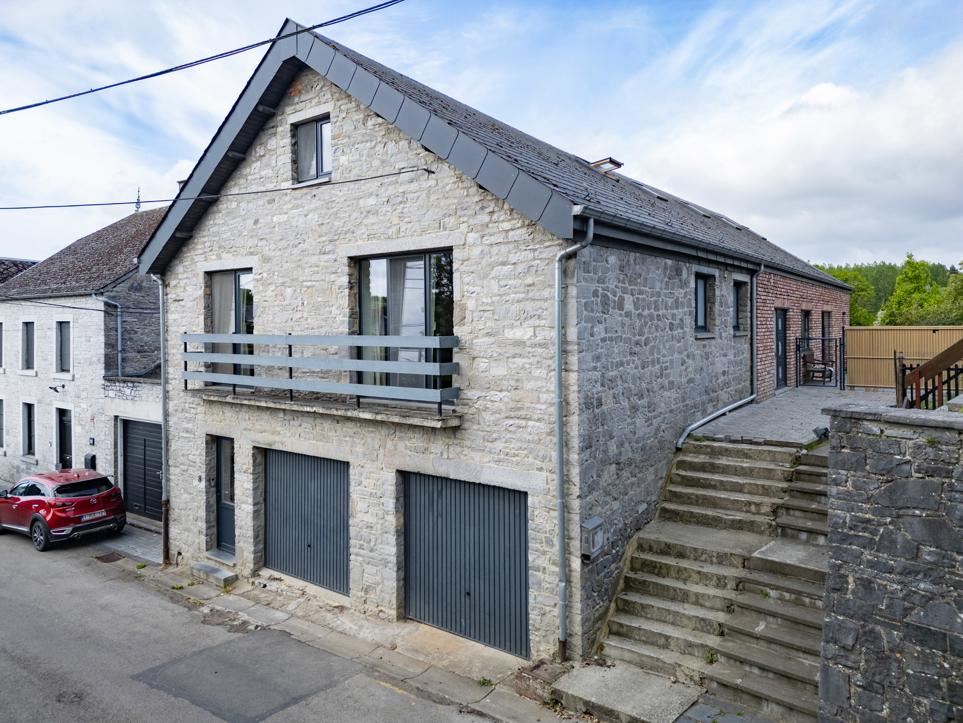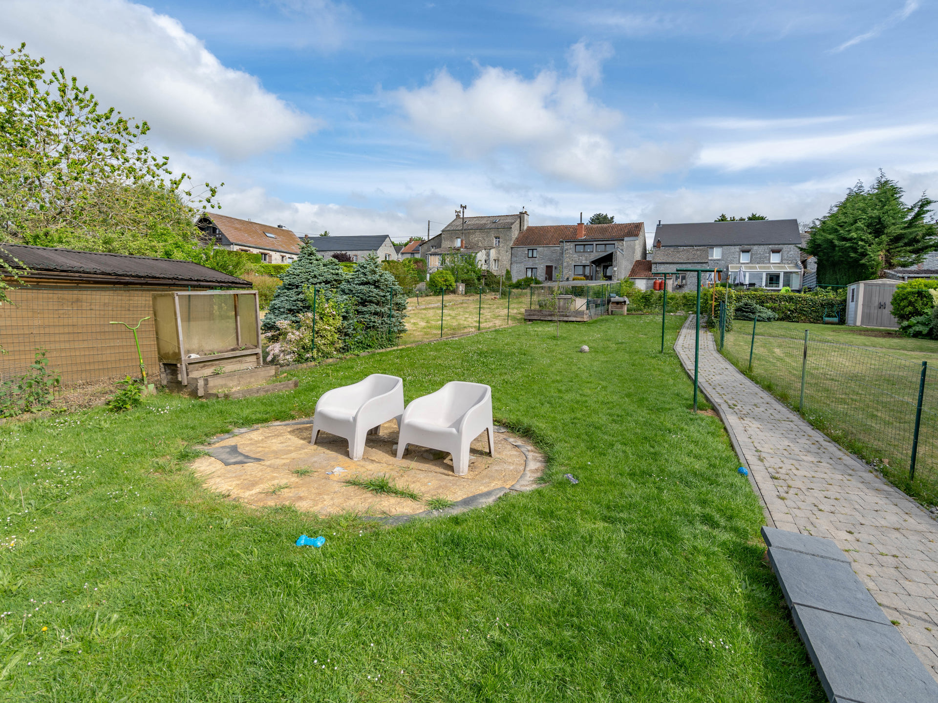 Le tout est implanté sur un terrain de 5 ares, offrant un agréable espace extérieur. Deux garages viennent compléter l’ensemble, ainsi que des caves, parfaites pour le rangement ou un atelier. Ce bien combine une partie immédiatement habitable et un espace à développer selon vos projets, ce qui en fait une opportunité rare sur le marché.