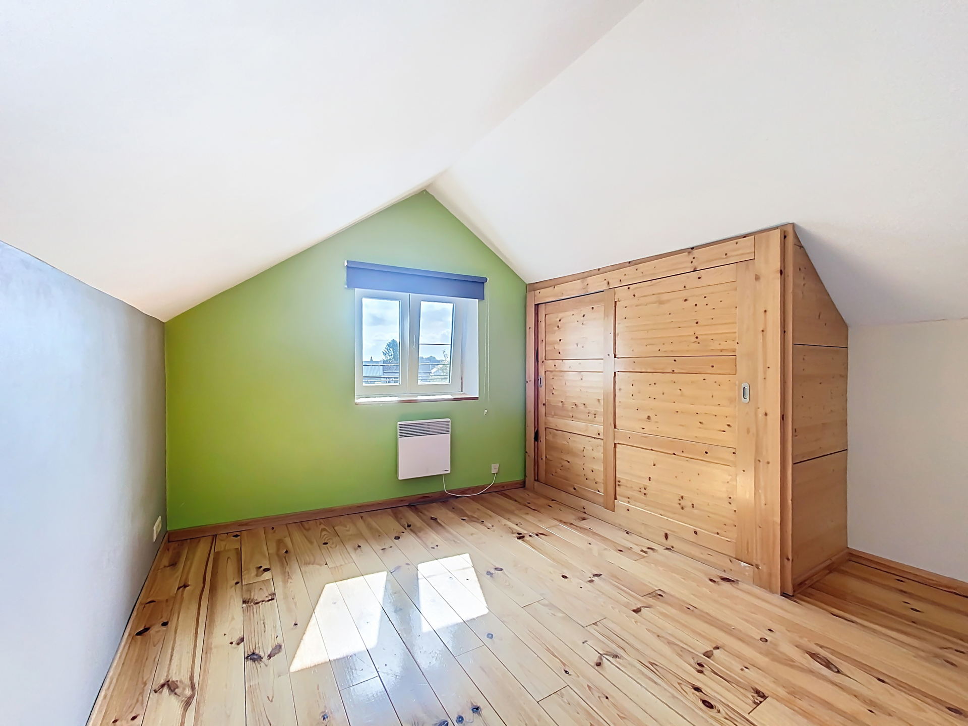 Située dans un quartier calme et verdoyant, cette maison présente un beau potentiel, tant pour un investisseur que pour une famille en quête d’espace. Le bien se compose d’une première partie entièrement habitable, comprenant un séjour lumineux, une cuisine équipée, une salle de bains et deux chambres en enfilade. Le confort est assuré par un poêle à pellets performant et une installation électrique conforme aux normes en vigueur.