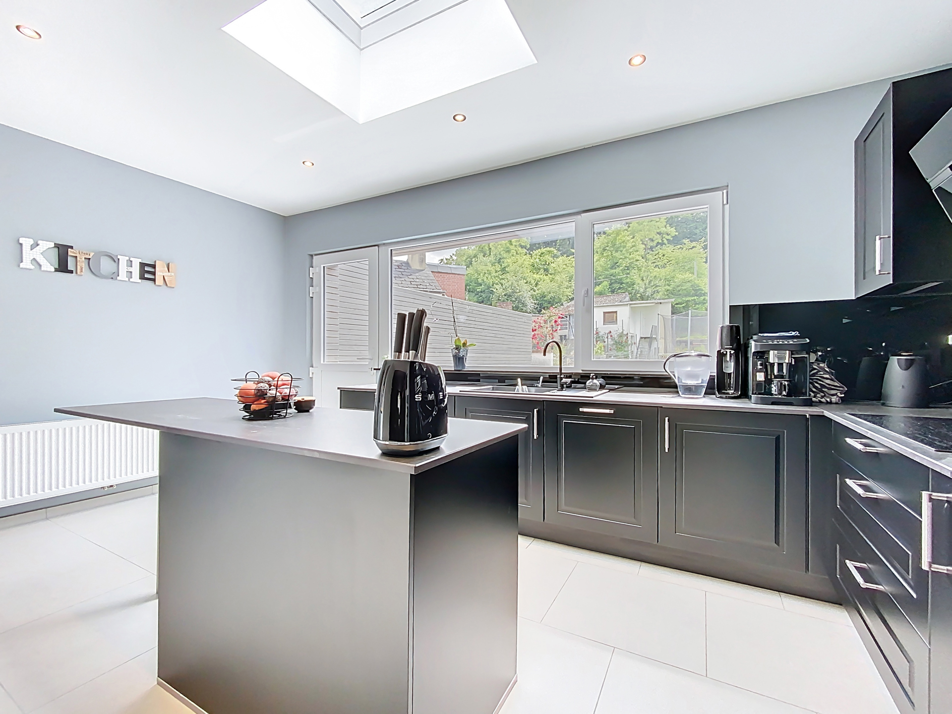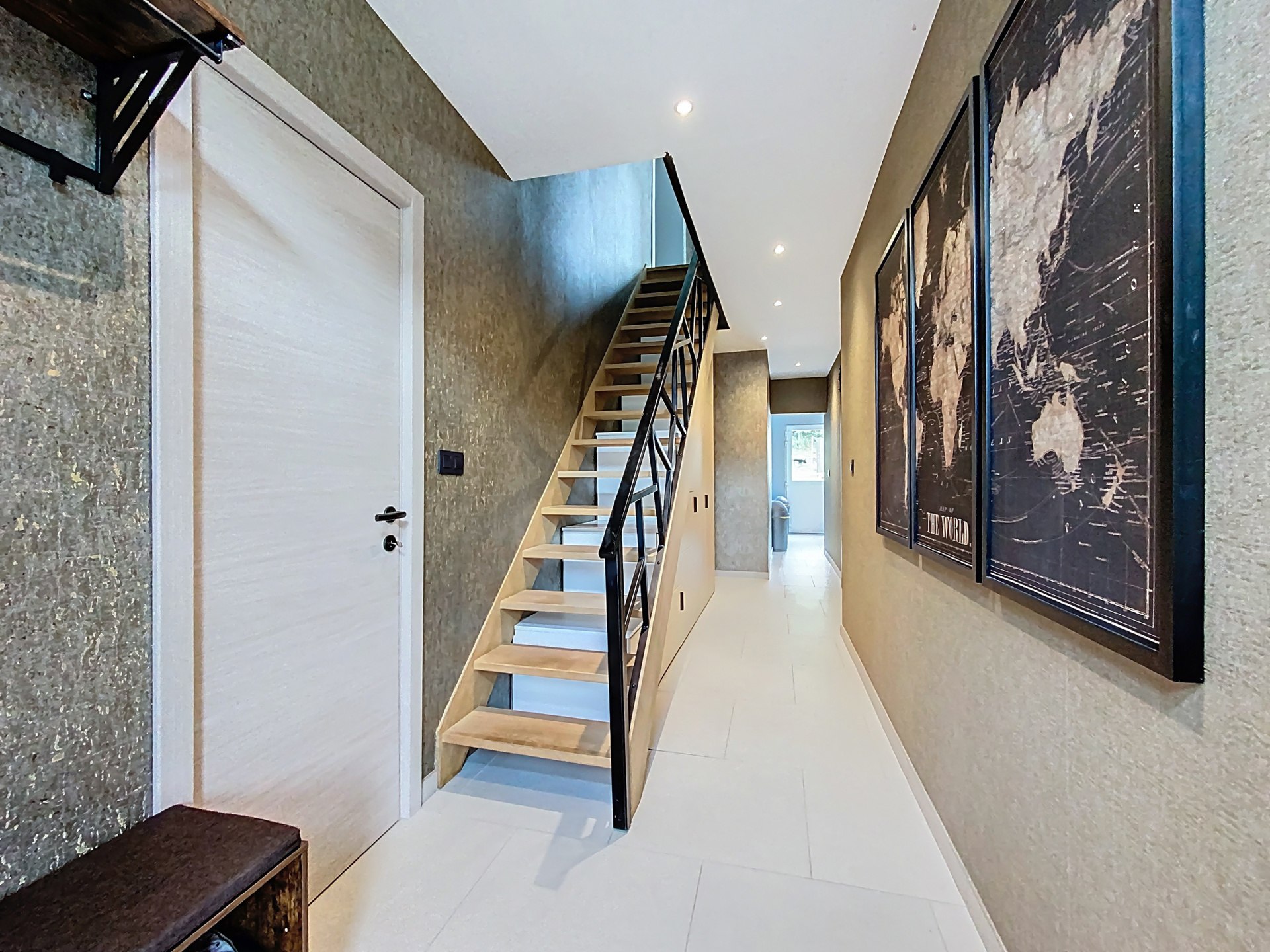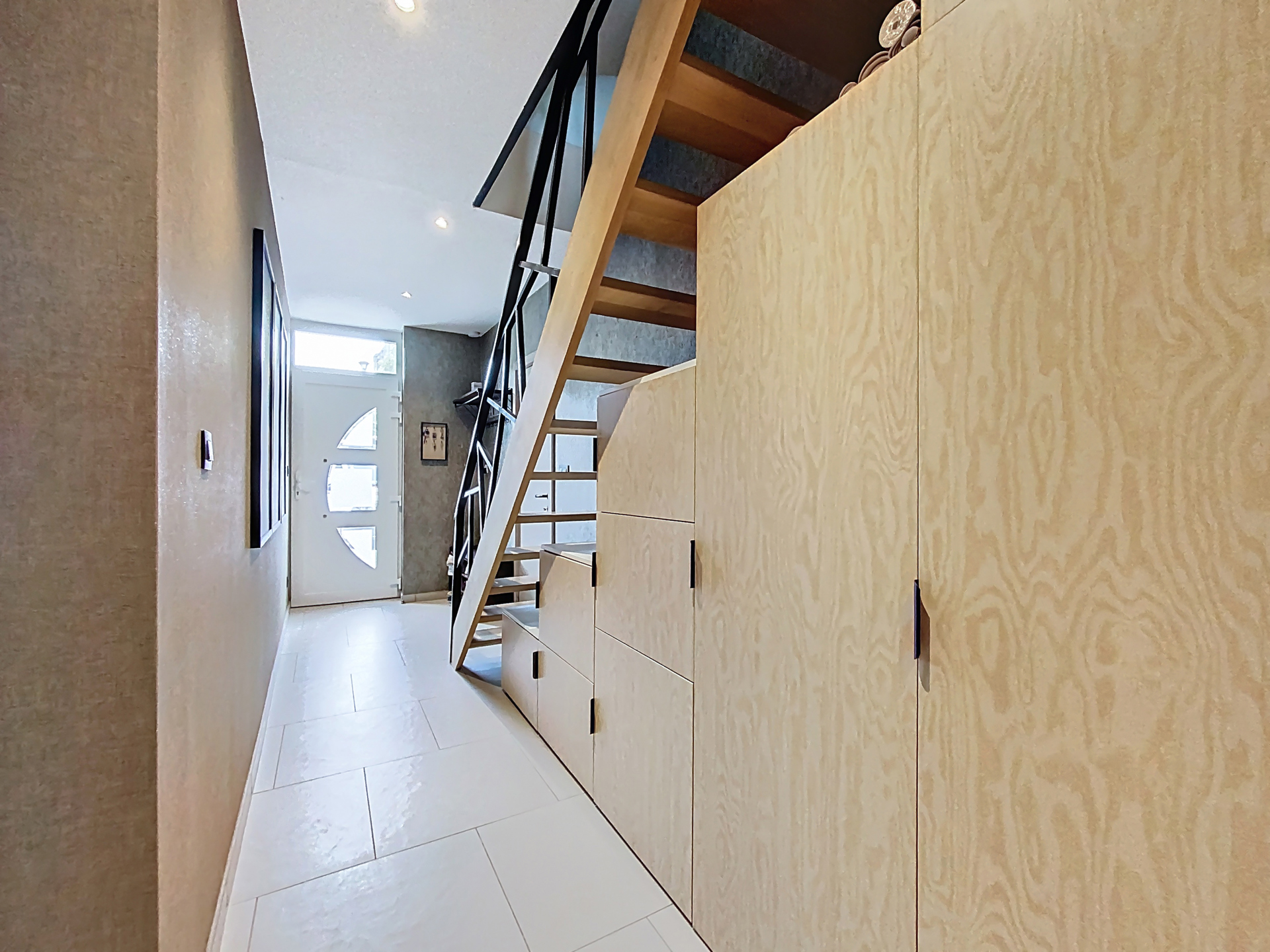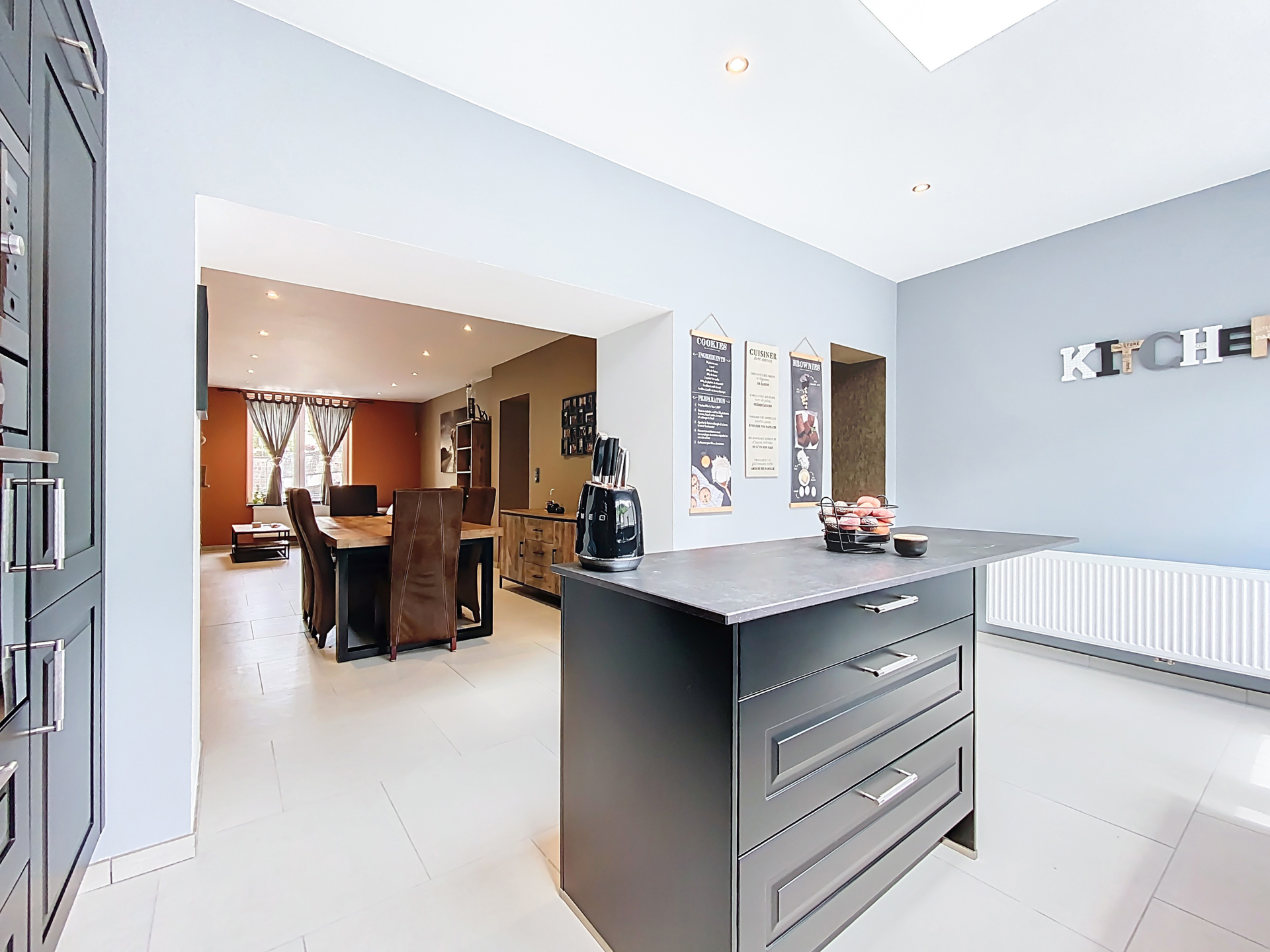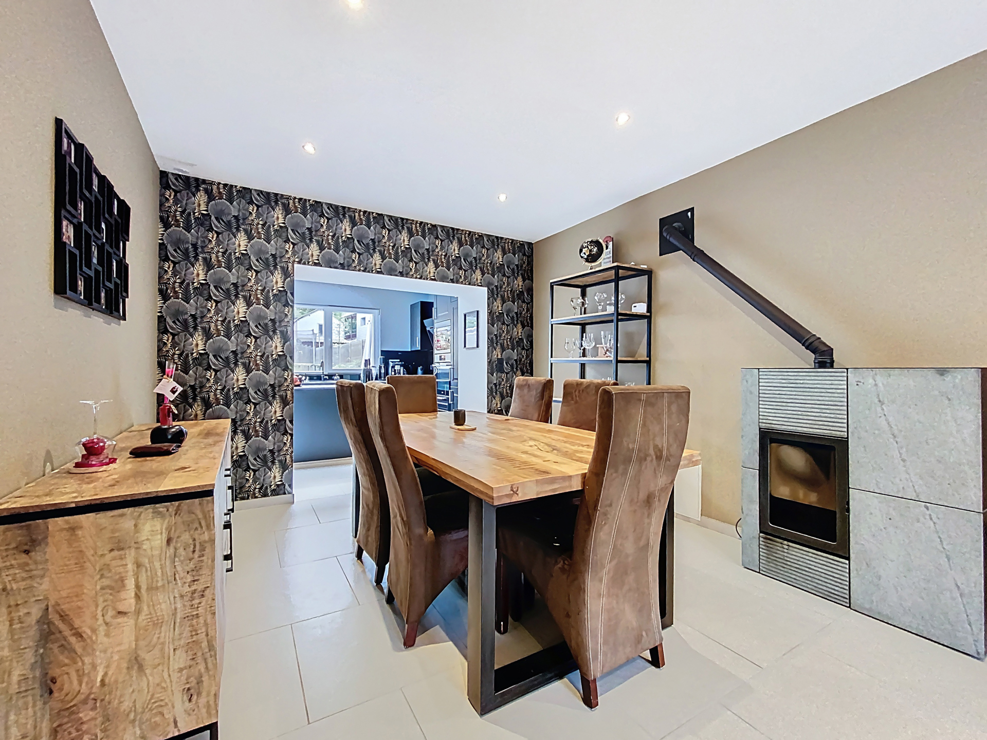 Le rez-de-chaussée accueille un salon cosy, une buanderie et une cuisine équipée contemporaine : un espace ouvert et harmonieux, parfait pour partager de bons moments.
