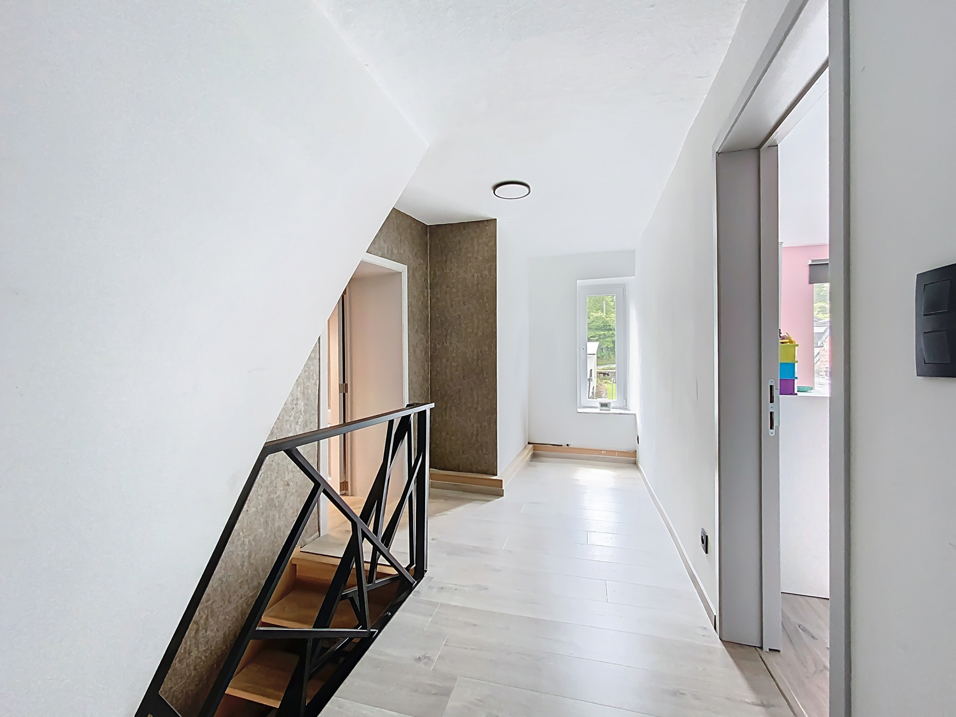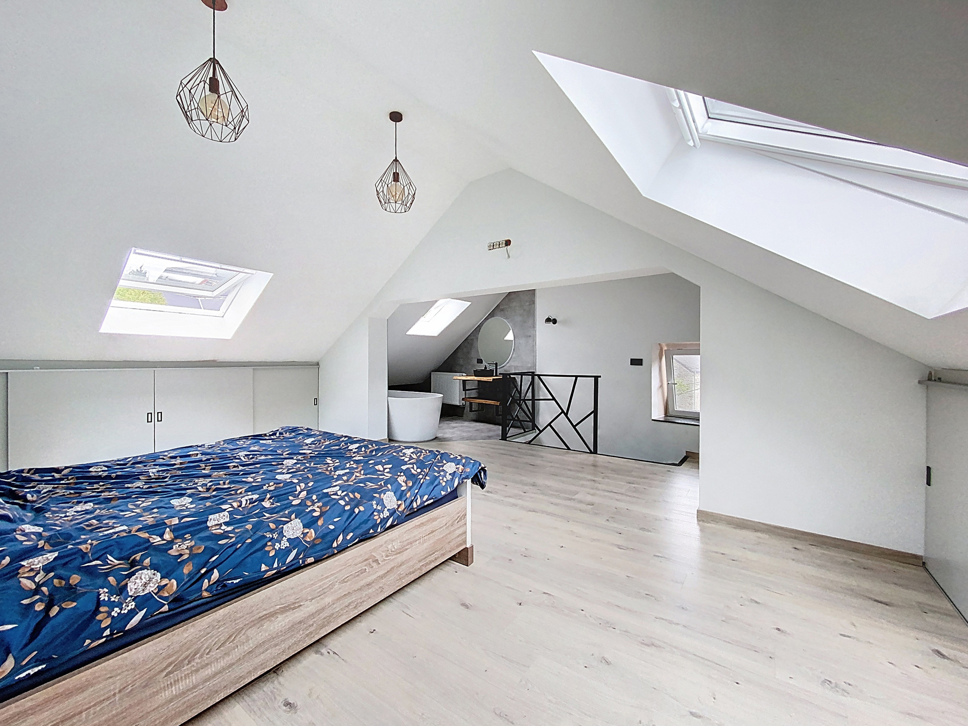 À l’étage, la maison se compose de trois belles chambres, dont une suite parentale avec salle de bain, ainsi qu’un bureau idéal pour le télétravail ou les besoins familiaux. Une salle de douche moderne vient compléter ce niveau, alliant esthétisme et fonctionnalité.