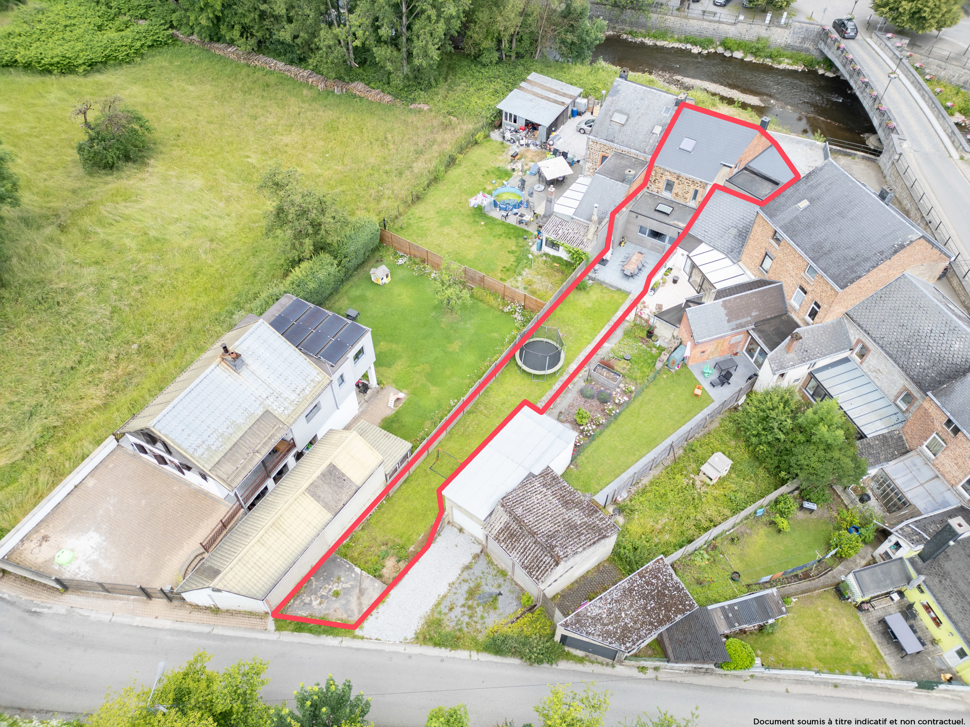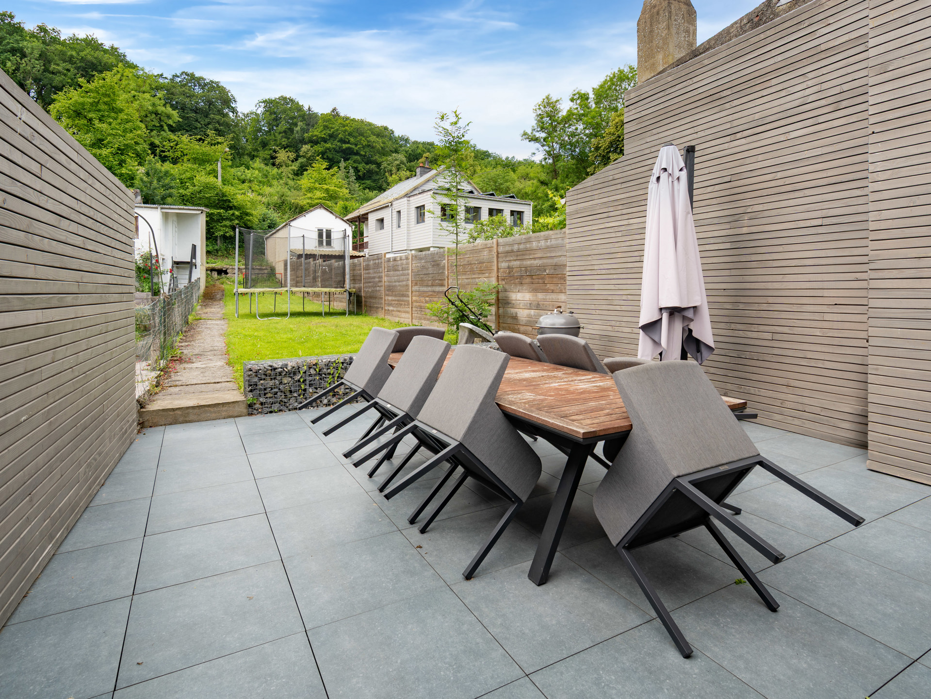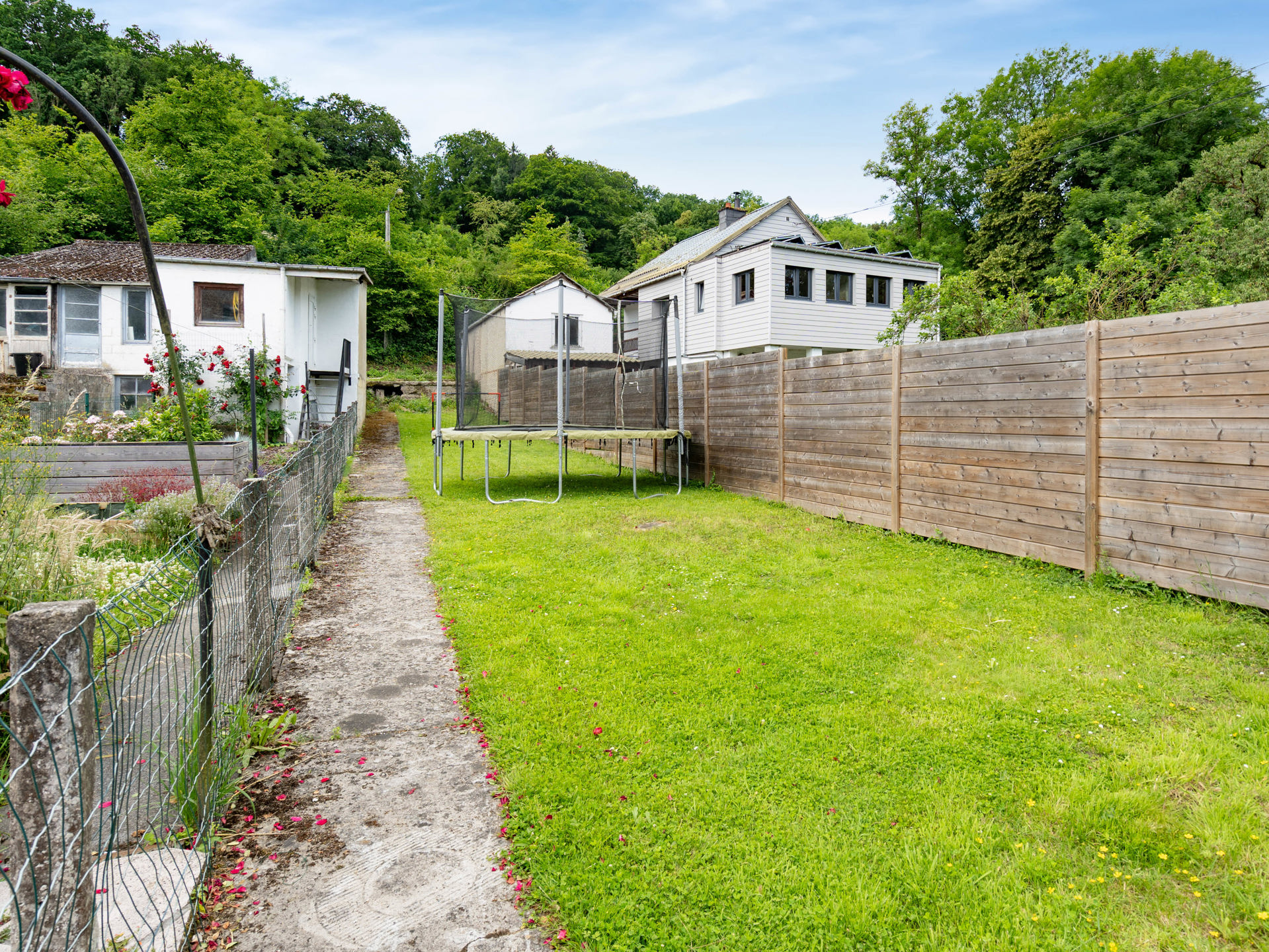 À l’extérieur, la terrasse offre un véritable coin de détente pour profiter des beaux jours, avec vue sur un jardin – un cadre idéal pour les enfants, les repas en plein air ou les longues soirées d’été. Et ce n’est pas tout : à l’avant, un grand parking privatif aux multiples possibilités s’ouvre à vous — carport, espace professionnel, accueil de véhicules...
