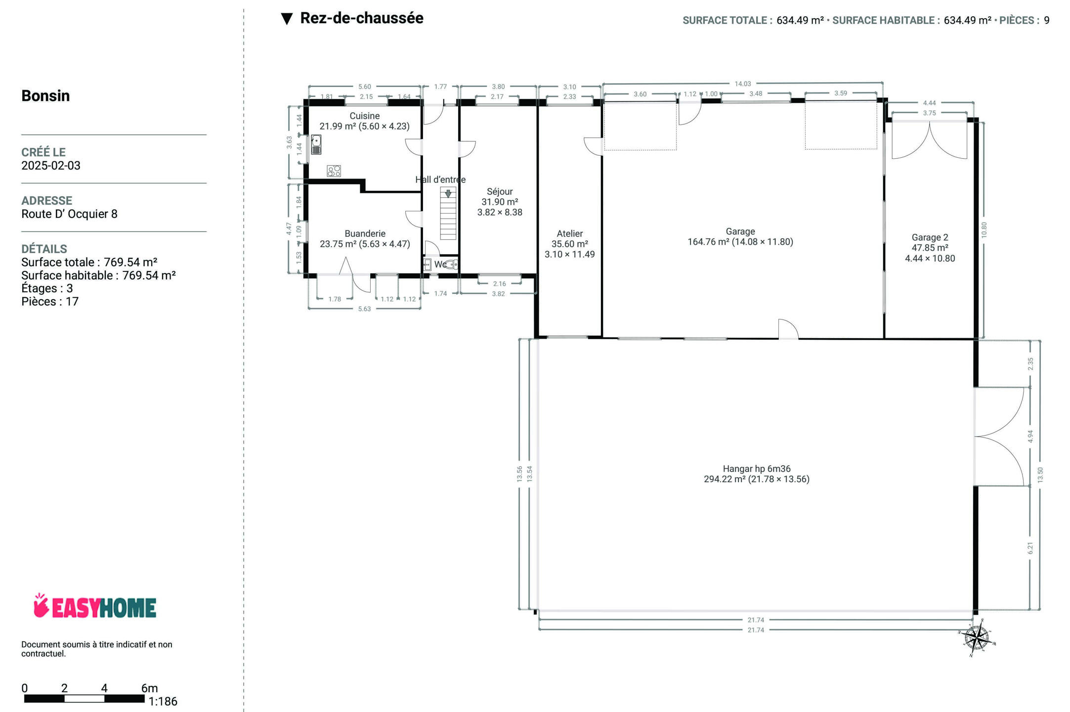 Partie habitation (~180 m² habitables, répartis sur 2 étages +1 grenier):