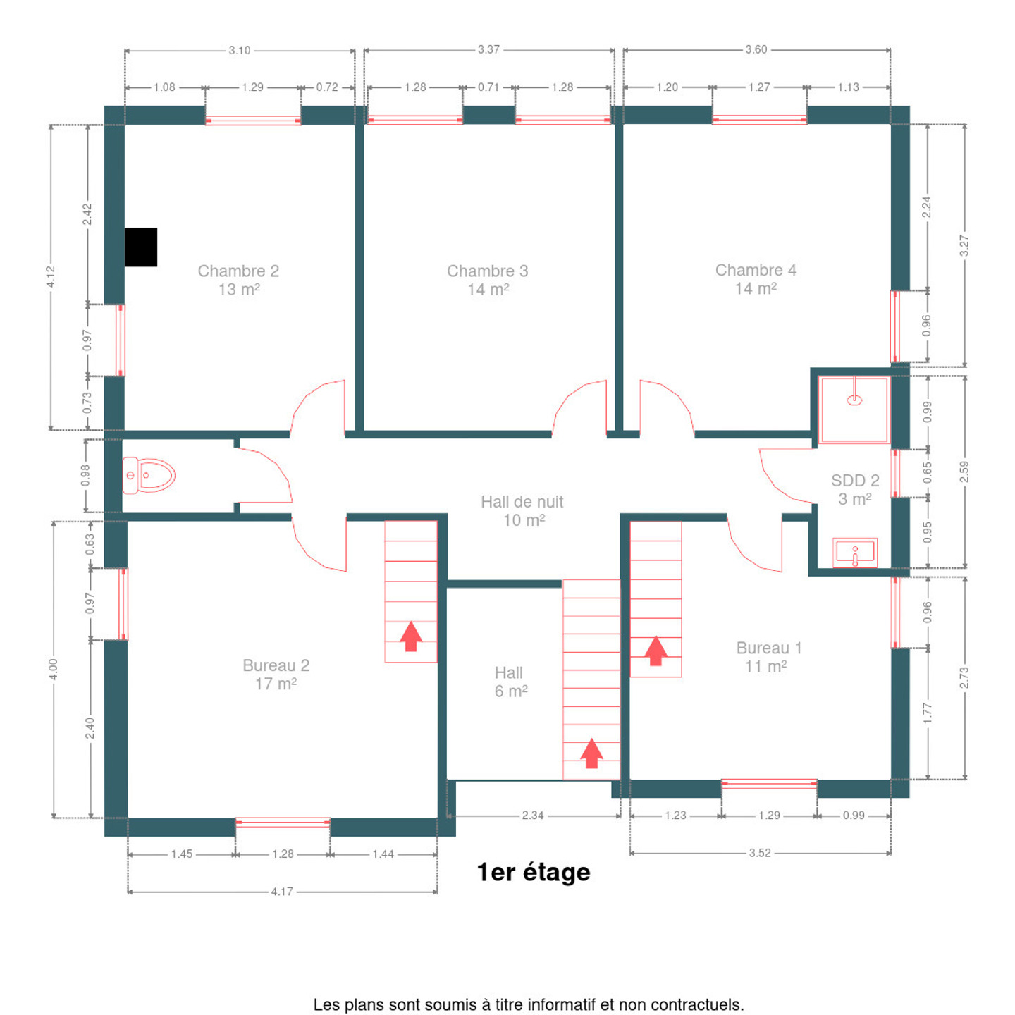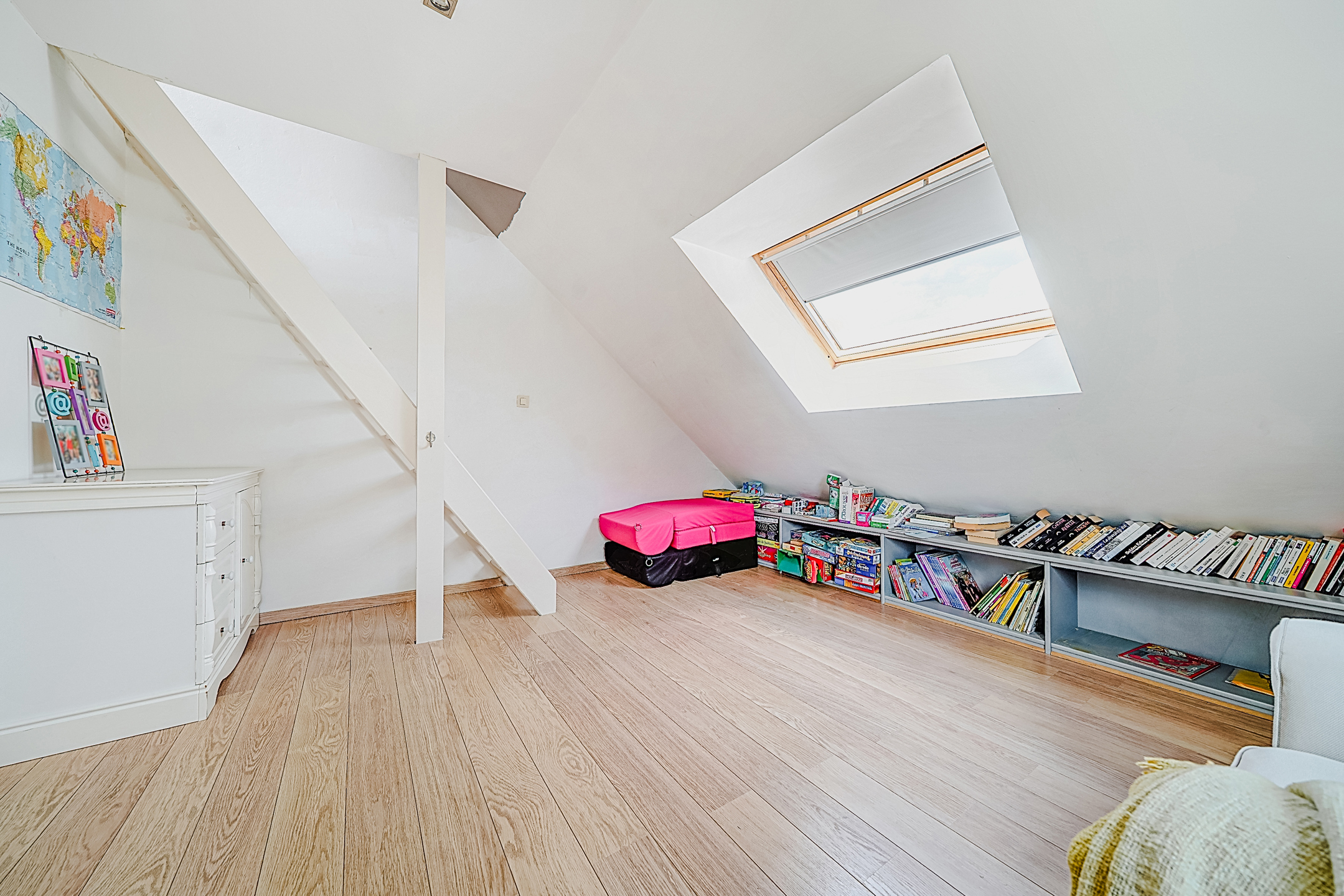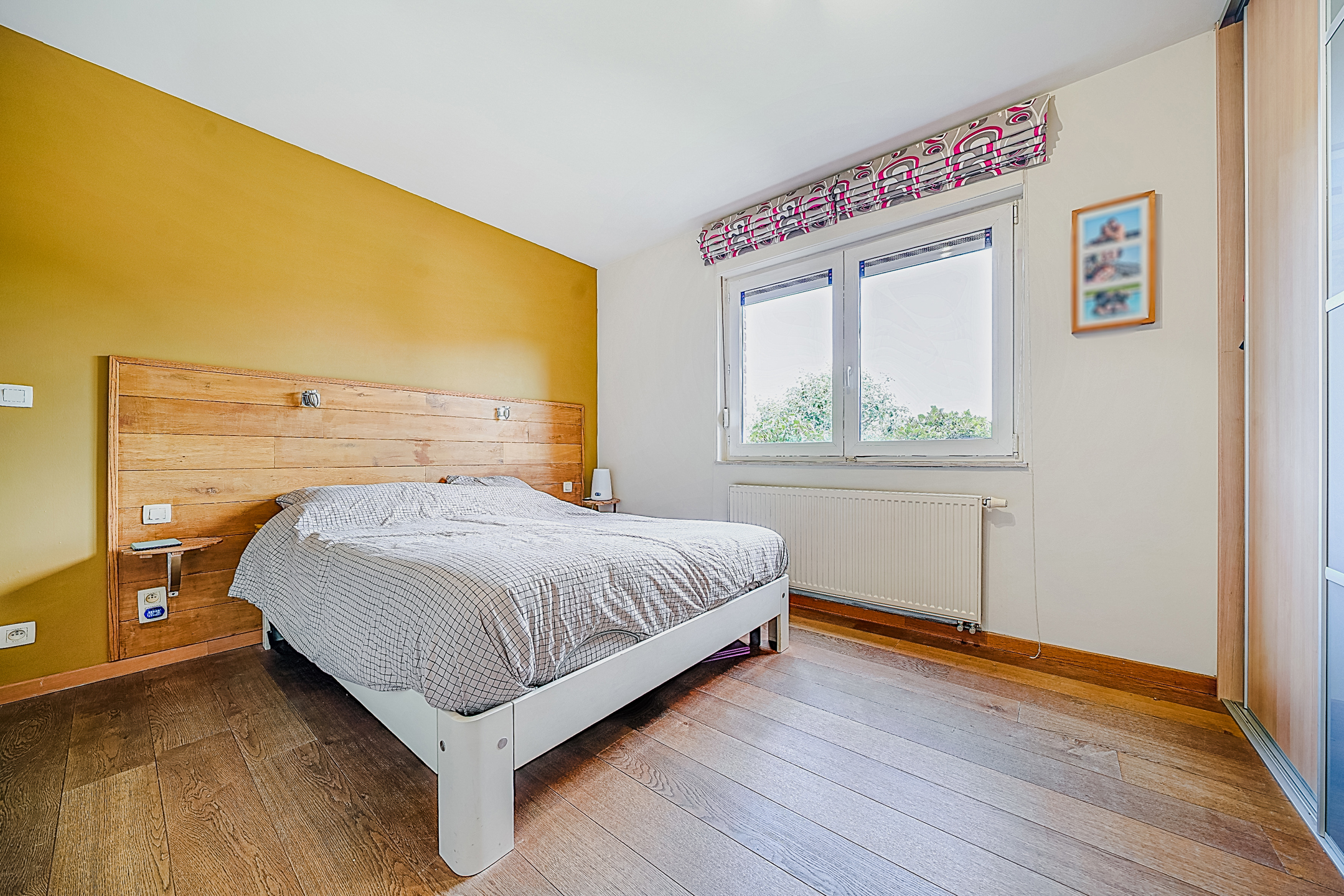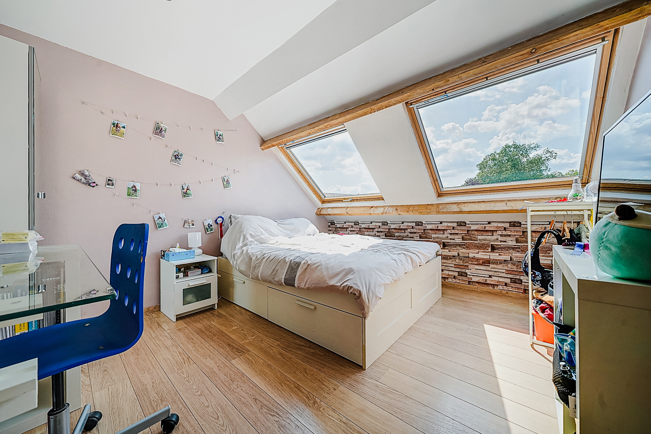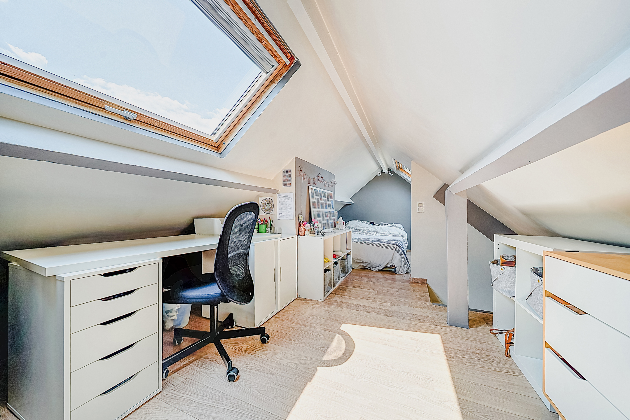 À l'étage, vous serez surpris par les beaux volumes des cinq chambres spacieuses, dont deux en mezzanine avec leur propre bureau, ainsi qu'une salle de douche.