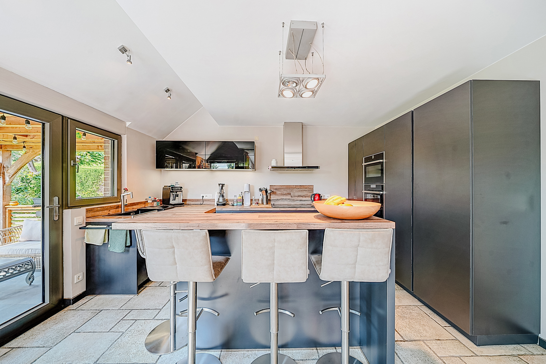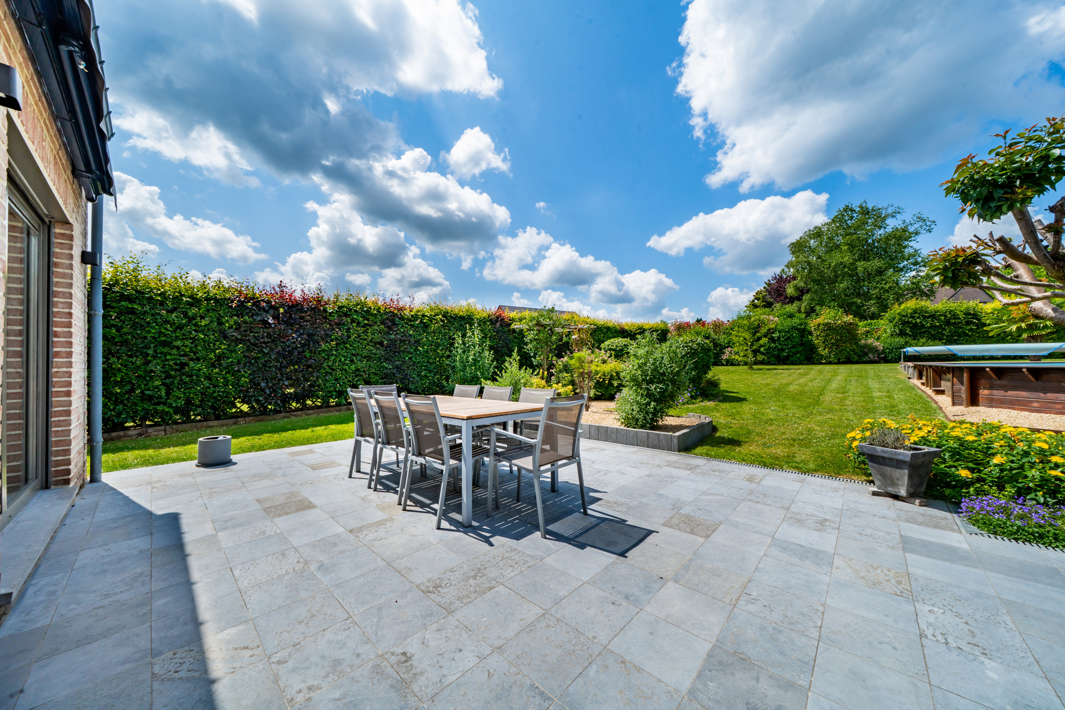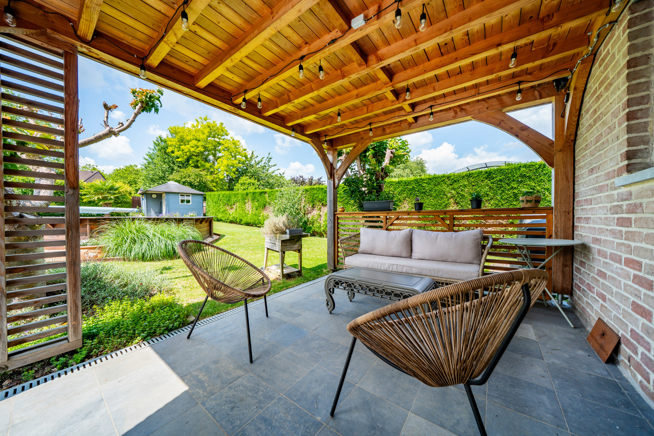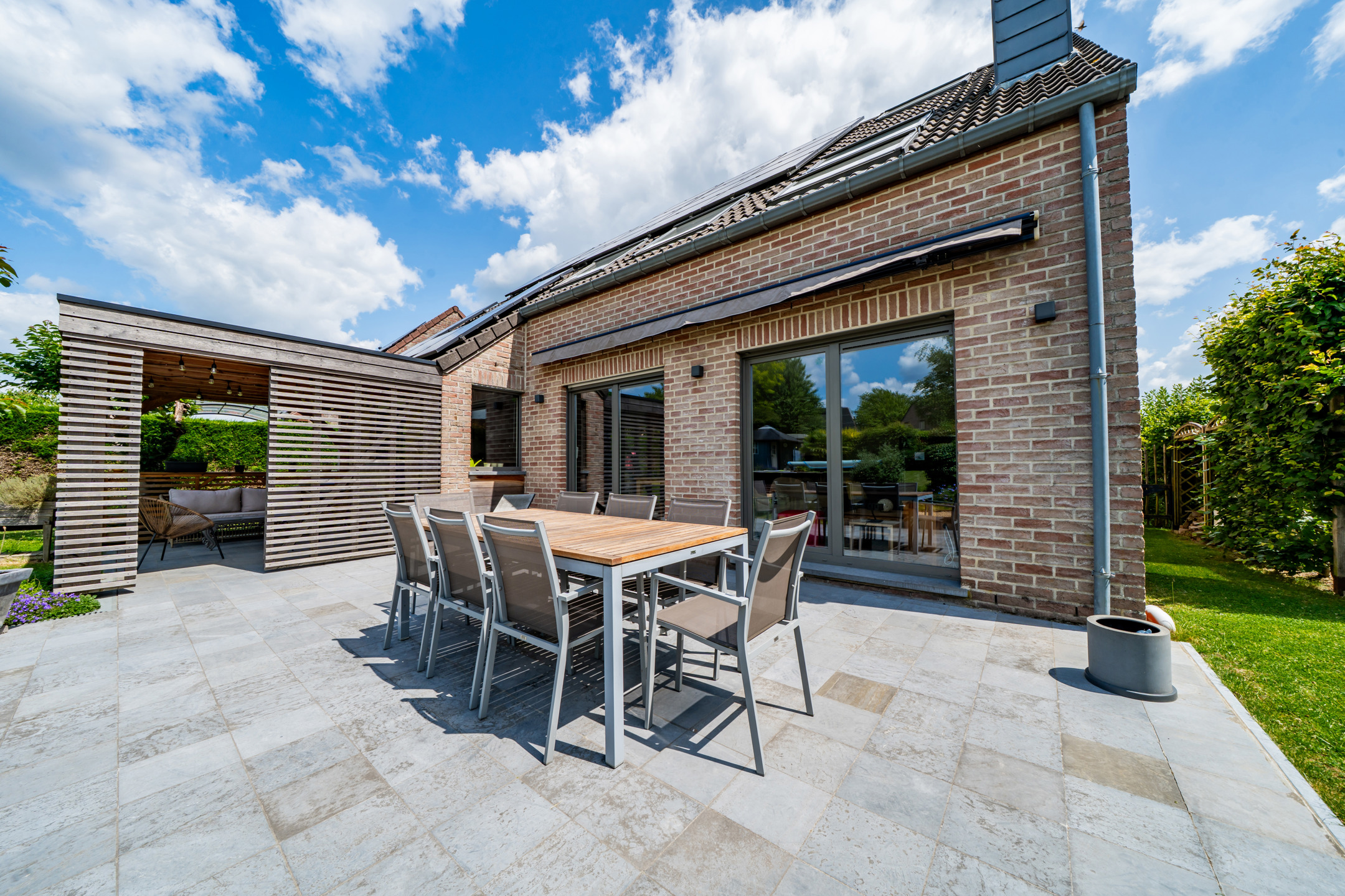 À l'extérieur, laissez-vous séduire par ce jardin parfaitement aménagé. Vous profiterez d'une belle terrasse de 43 m² en pierre bleue, attenante à une pergola cosy. Le jardin, facile d'entretien et fleuri, comprend une piscine et son local technique, ainsi qu'un abri de jardin, complétant ainsi ce cadre idyllique.